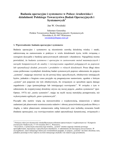 Badania operacyjne i systemowe w Polsce: środowisko i działalność