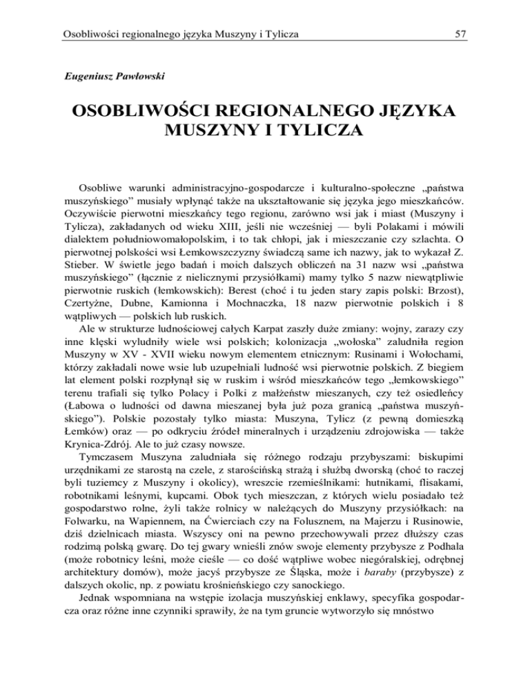 osobliwe wymagało oczywiście szczegółowego zbadania i opracowania językoznawczego. Byłoby stratą zarówno dla Muszyny i Tylicza, jak i dla dialektologii polskiej,
