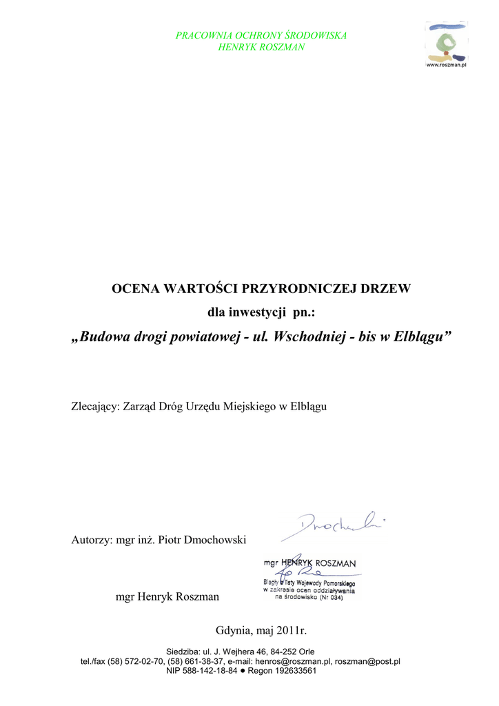 PRACOWNIA OCHRONY ŚRODOWISKA HENRYK ROSZMAN OCENA WARTOŚCI PRZYRODNICZEJ DRZEW dla inwestycji pn.: „Budowa drogi powiatowej - ul. Wschodniej - bis w Elblągu” Zlecający: Zarząd Dróg Urzędu Miejskiego w Elblągu Autorzy: mgr inŜ. Piotr Dmochowski mgr Henryk Roszman Gdynia, maj 2011r. Siedziba: ul. J. Wejhera 46, 84-252 Orle tel./fax (58) 572-02-70, (58) 661-38-37, e-mail: [email protected], [email protected] NIP 588-142-18-84 ! Regon 192633561 1. Podstawa Podstawą formalną opracowania jest Umowa z Gminą Miasta Elbląg w Elblągu. Podstawą kartograficzną opracowania jest inwentaryzacja drzew na mapie z przebiegiem projektowanej drogi, przekazana przez Zlecającego. 2. Zakres inwentaryzacji przyrodniczej Pracami objęto pas terenu wzdłuŜ ul. Wschodniej w Elblągu (od skrzyŜowania z ul. Łęczycką do skrzyŜowania z przedłuŜeniem ul. B. Chrobrego – rejon leśniczówki Dębica), obejmujący szpaler drzew przydroŜnych, w tym aleję grabową oraz teren projektowanej ul. Wschodniej - bis. Szczególną uwagę zwrócono na miejsca potencjalnych konfliktów drzewostanu z projektowaną drogą. Inwentaryzacja przyrodnicza objęła: - wartość przyrodniczą drzewa jako taką (wymiary pomnikowe lub cenny przyrodniczo gatunek), - obecność gniazd ptasich, - obecność pachnicy dębowej (na podstawie obserwacji pośrednich śladów bytowania owada), - obecność gatunków chronionych porostów, - obecność w runie gatunków chronionych roślin, - klasyfikację siedlisk przyrodniczych pod kątem ochrony (siedliska priorytetowe). PowyŜszy zakres odpowiada wymaganiom określonym przez RDOŚ OT/Elbląg, w piśmie WSTE.4242.1.7.2011.GK z dn. 02.05.2011r., (w załączeniu). Inwentaryzacja przyrodnicza została przeprowadzona w dniu 14.05.2011r. Nie weryfikowano informacji zawartych na przekazanym przez Zlecającego podkładzie kartograficznym inwentaryzacji drzew. 3. Ocena wartości przyrodniczej terenu Aktualnie ukształtowana szata roślinna w pasie terenu przewidzianym pod drogę jest wynikiem procesów naturalnych, występujących w wyniku zaniechania rolniczego uŜytkowania terenu. 2 Generalnie moŜna wyróŜnić dwa zasadnicze zespoły roślinne: -zespoły roślinności zielnej zajmujące znaczne powierzchnie w części, -zespół młodych zadrzewień wykształconych spontanicznie w części północnej. Dominującym gatunkiem budującym drzewostan, w pasie nowej drogi, są: olsza i jesion oraz wierzba, miejscami brzoza. Zadrzewienia te charakteryzują się znacznym zwarciem i duŜym zróŜnicowaniem wiekowym (przewaŜają drzewa w wieku do kilkunastu lat). Wśród gatunków zielnych wyróŜnia się nawłoć kanadyjska. Skład gatunkowy zbiorowisk pozwala przyjąć, Ŝe występują one na dwóch potencjalnych siedliskach: - grądu (w miejscach suchych), - łęgu olszowo-jesionowego (w podmokłych obniŜeniach). Zbiorowiska roślinne tworzą tu zróŜnicowane stadia sukcesji roślinności prowadzące do renaturalizacji tych terenów. Z punktu widzenia klasyfikacji siedliskowej istniejące zespoły roślinne nie pozwalają zaliczyć fragmentów terenu, zajętych pod nową drogę, do siedlisk priorytetowych wskazanych w Załączniku nr I do Dyrektywy Rady Europy w sprawie ochrony siedlisk przyrodniczych. Pas zieleni wzdłuŜ istniejącej ul. Wschodniej (alei grabowej) wykazuje cechy grądu, z charakterystycznym dla tego zbiorowiska składem gatunków takŜe w runie (kokoryczka wielokwiatowa (Polygonatum multiflorum), marzanka wonna (Galium odoratum). Spotyka się takŜe tojeść rozesłaną (Lysimachia nummularia) i wiechlinę gajową (Poa nemoralis L.) ). Cennym elementem szaty roślinnej w granicach obszaru opracowania jest szpaler starych drzew (aleja grabowa) wzdłuŜ północnego odcinka ul. Wschodniej. Jest to pozostałość po dawnej alei drzew pielęgnowanych poprzez przycinanie korony. Dowodem na to jest charakterystyczny pokrój drzew (grabów) – zdjęcia nr 1, 2. W składzie gatunkowym dominuje grab z domieszką dębu, brzozy i lipy. Aleja drzew jest zaniedbana, znaczna część grabów jest w złym stanie zdrowotnym, głównie ze względu na liczne wypróchnienia pni i konarów. Lokalizację cennych przyrodniczo okazów przedstawiono na załączniku graficznym. 3 Wyniki inwentaryzacji Pachnica dębowa Oceniane drzewa, składające się aleję grabową nie tworzą (mimo licznych wypróchnień pni) warunków korzystnych dla zasiedlenia przez pachnicę dębową (Osmoderma eremita). Wszystkie drzewa z wypróchnieniami rosną w stosunkowo duŜym zacienieniu. Optymalne siedliska pachnicy są typowe dla dwóch krańców spektrum antropogenicznych przekształceń naszych rodzimych ekosystemów: z jednej strony są to lasy naturalne bogate w wiekowe drzewa liściaste i luki powstałe na skutek rozpadu drzewostanu, a z drugiej strony krajobrazy kulturowe o odpowiednio wysokim zagęszczeniu zadrzewień. Przyczyną takiego wzorca występowania pachnicy jest preferowanie duŜych, dziuplastych drzew rosnących w dobrze nasłonecznionych miejscach. Stanowiska zacienione są zasiedlane znaczniej słabiej, prawdopodobnie ze względu na niekorzystne warunki termiczne. Stąd stosunkowo niewiele znanych z Polski stanowisk pachnicy znajduje się w lasach gospodarczych, gdzie drzewa w starszych klasach wiekowych są rzadkie, a ponadto wyrównana struktura przestrzenna sprzyja zacienieniu pni. Przykładowo na Pojezierzu Iławskim na ponad 200 drzew zasiedlonych przez pachnicę (Oleksa i in. 2007, Gawroński i Oleksa mat. niepubl.) tylko kilkanaście zlokalizowanych było w lasach, a i to w miejscach silnie prześwietlonych, takich jak np. stare aleje otoczone młodymi uprawami leśnymi na gruntach porolnych. Gatunek zasiedla z reguły drzewa starsze, powyŜej 100 lat. Głównym miejscem występowania pachnicy w Polsce są krajobrazy kulturowe – przede wszystkim zadrzewienia przydroŜne, ale takŜe parki i cmentarze, sady, zadrzewienia w obrębie łąk i pastwisk. W Polsce północnej p