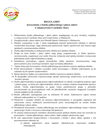 REGULAMIN korzystania z boiska piłkarskiego i placu zabaw w