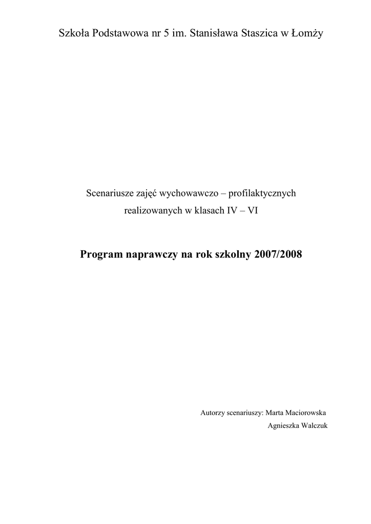 Szkoła Podstawowa nr 5 im. Stanisława Staszica w ŁomŜy Program