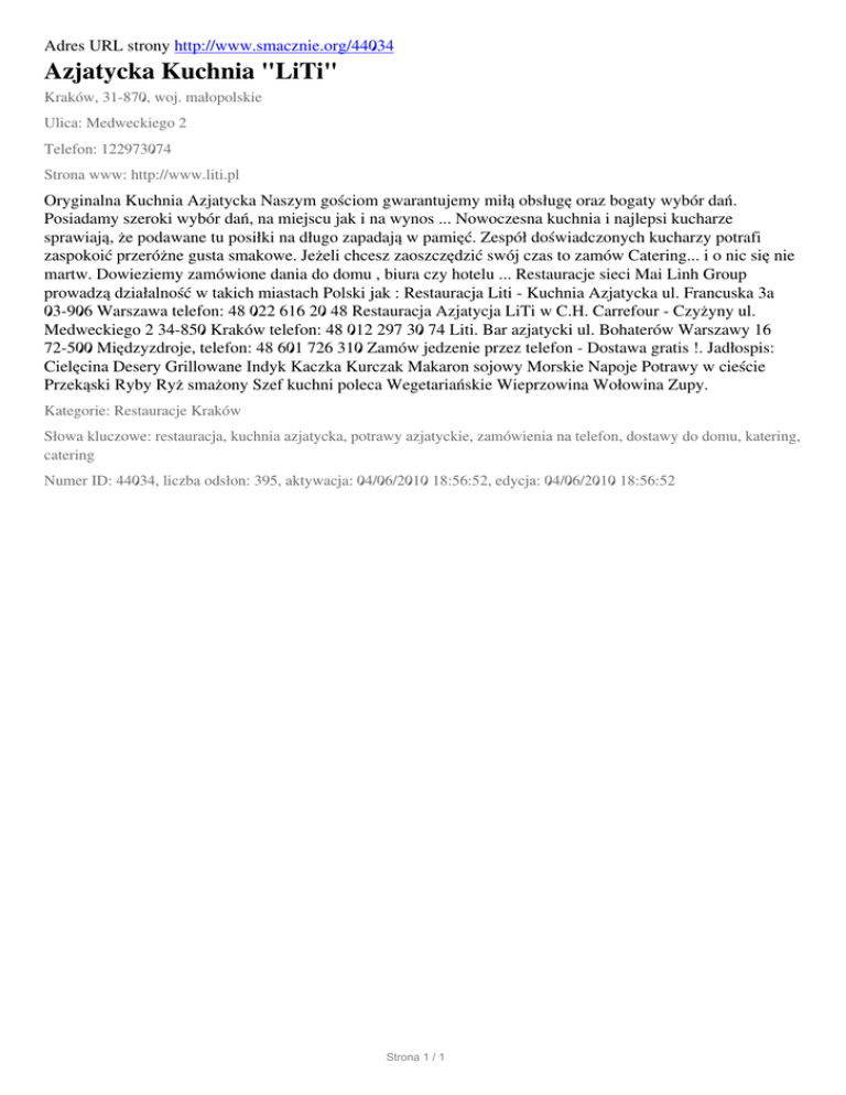 Azjatycka Kuchnia "LiTi", Krakow, Medweckiego 2