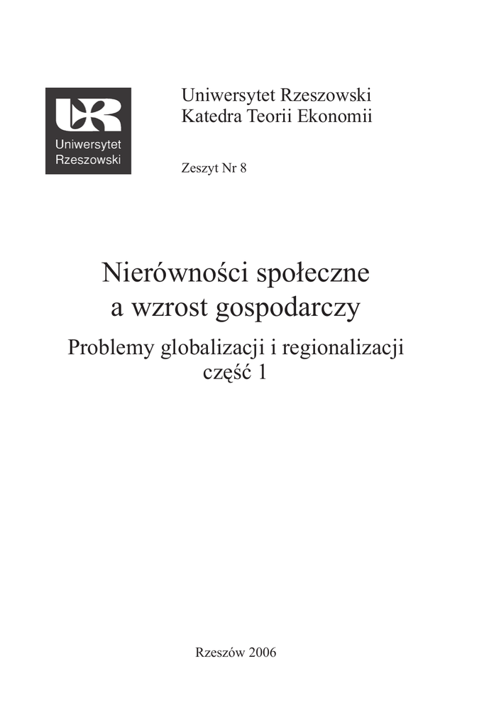 Uniwersytet Rzeszowski Katedra Teorii Ekonomii Zeszyt Nr 8 Nierówności społeczne a wzrost gospodarczy Problemy globalizacji i regionalizacji część 1 Rzeszów 2006 Redakcja naukowa Prof. dr hab. Michał Gabriel Woźniak Recenzent: Prof. dr hab. Mieczysław Dobija Redakcja techniczna Marek Bobowski (MITEL) Korekta MITEL ISBN 83-60545-09-X wydawca 35-205 Rzeszów, ul. Warszawska 5/7, tel./faks 017 852 13 62 Spis treści / Table of contents Edward Łukawer W nawiązaniu do idei i przekonań Michała Kaleckiego . . . . . . . . . . . . . With Reference to the Idea and Convictions of Michał Kalecki . . . . . . . Michał Gabriel Woźniak Kapitalizm globalny w kontekście aksjologicznym . . . . . . . . . . . . . . . . . Global Capitalism in Axiological Context . . . . . . . . . . . . . . . . . . . . . . . . Franciszek Piontek, Barbara Piontek Transformacja a koncepcje rozwoju – skutki dla kapitału: ekonomicznego, ludzkiego i przyrodniczego . . . . . . . . . . . . . . . . . . . . . . Transformation and Development Conception – Results for Capital: Economic, Human and Natural . . . . . . . . . . . . . . . . . . . . . . . . . . . . . . . . Krzysztof Kietliński Religijne determinanty działalności gospodarczej w perspektywie czterech wielkich religii: judaizmu, buddyzmu, chrześcijaństwa i islamu Economy in Perspective of Four Great Religions: Judaism, Buddhism, Christianity and Islam . . . . . . . . . . . . . . . . . . . . . . . . . . . . . . . . . . . . . . . Franciszek Janusz Mazurek Miejsce fundamentalnej normy moralności i norm moralnych jako reguł w dziedzinie gospodarczej . . . . . . . . . . . . . . . . . . . . . . . . . . . The Place of Fundamental Moral Norm and Moral Norms as Rules in the Economic Area . . . . . . . . . . . . . . . . . . . . . . . . . . . . . . . . . . . . . . . . Vasyl Zinko, Oleh Ohirko, Vladimir Andrushko Cerkwa ta globalizacija i regionalizacija . . . . . . . . . . . . . . . . . . . . . . . . . Kościół a globalizacja i regionalizacja . . . . . . . . . . . . . . . . . . . . . . . . . . . Church and Globalization and Regionalization . . . . . . . . . . . . . . . . . . . . 9 14 15 23 25 42 43 58 61 84 85 85 101 spis treści Ewa Zysnarska Efektywność, etyka i ekologia w obliczu globalizacji . . . . . . . . . . . . . . . Effectivity, Ethics and Ecology at Globalizations Process . . . . . . . . . . . Mieczysław Dobija Międzynarodowe porównywanie wartości . . . . . . . . . . . . . . . . . . . . . . . International Comparisons of Values . . . . . . . . . . . . . . . . . . . . . . . . . . . . Krystyna Leśniak-Moczuk Lokalizm w perspektywie globalizacji . . . . . . . . . . . . . . . . . . . . . . . . . . Localizm in Globalization Perspective . . . . . . . . . . . . . . . . . . . . . . . . . . Anna Kulpa-Ogdowska Włączeni i wyłączeni z globalnej sieci. Społeczne konsekwencje rozwoju nowoczesnych technologii i konsumeryzmu . . . . . . . . . . . . . . . The Included and the Excluded from Global Network. Social Consequences of Modern Technologies and Consumerism Development . . . . . . . . . . . . . . . . . . . . . . . . . . . . . . . . . . . . . . . . . . . . . . Elżbieta Mikuła-Bączek Kapitał a kapitał ludzki w procesie kształtowania wymiaru globalizacji Capital and Human Capital in the Process of Creating the Face of Globalization . . . . . . . . . . . . . . . . . . . . . . . . . . . . . . . . . . . . . . . . . . . . Magdalena Szpunar Globalizacja – ziszczenie wizji McLuhana . . . . . . . . . . . . . . . . . . . . . . . Globalization – Realizing McLuhan Vision . . . . . . . . . . . . . . . . . . . . . . . Stanisław Fel Podmioty pozarządowe w global governance . . . . . . . . . . . . . . . . . . . . . Non-Governmental Subjects in Global Governance . . . . . . . . . . . . . . . . Ewa Cierniak-Szóstak Mentalność ekonomiczna jako czynnik prorozwojowy . . . . . . . . . . . . . . Economic Mentality and Economic Development . . . . . . . . . . . . . . . . . Ireneusz Maj Homo symbolicus a homo economicus . . . . . . . . . . . . . . . . . . . . . . . . . . Homo Symbolicus versus Homo Economicus . . . . . . . . . . . . . . . . . . . . . Anna Mazurkiewicz, Marek Uryniak Podmiotowość człowieka w aspekcie jego działalności w organizacji . . . . . . . . . . . . . . . . . . . . . . . . . . . . . . . . . . . . . . . . . . . . . . Human’s Subjectivity in Aspect of His Activity in an Organization . . . . Łukasz Jabłoński Dylematy konwergencji ekonomicznej w warunkach globalizacji . . . . . Economic Convergence Dilemma Within Globalization . . . . . . . . . . . . . 103 115 117 127 129 136 137 154 155 169 171 181 183 195 197 207 209 218 219 234 235 251 spis treści Wioletta Nowak Koncepcje konwergencji w teorii wzrostu gospodarczego . . . . . . . . . . . Concepts of Convergence in the Growth Theory . . . . . . . . . . . . . . . . . . . Jadwiga Berbeka Konwergencja gospodarcza a konwergencja społeczna krajów Unii Europejskiej (15) w latach 1985–2002 . . . . . . . . . . . . . . . . . . . . . . Economic and Social Convergence of EU Countries (15) in Years 1985–2002 . . . . . . . . . . . . . . . . . . . . . . . . . . . . . . . . . . . . . . . . . Magdalena Cyrek Procesy upodabniania się struktur gospodarczych Polski i wybranych krajów Unii Europejskiej . . . . . . . . . . . . . . . . . . . . . . . . . . . . . . . . . . . . . Processes of Economic Structure’s Convergence between Poland and Chosen European Union Countries . . . . . . . . . . . . . . . . . . . . . . . . . . Jakub Piecuch Wpływ bezpośrednich inwestycji zagranicznych na poziom spójności gospodarczej regionów UE . . . . . . . . . . . . . . . . . . . . . . . . . . . . . . . . . . . Fdi Influence on Regional Economic Cohesion . . . . . . . . . . . . . . . . . . . Wiktor Czużykow Teritorialna asimietrija w Ewropi: modieljuwannia dlja Ukrainu . . . . . . Terytorialna asymetria w Europie: modelowanie dla Ukrainy . . . . . . . . Territorial Asymmetry in Europe: Modeling for Ukr