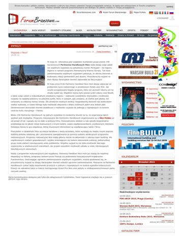 Strona korzysta z plików cookies. Korzystanie z witryny bez zmiany ustawień Twojej przeglądarki oznacza, że będą one umieszczane w Twoim urządzeniu końcowym. Możesz określić warunki przechowywania lub dostępu do plików cookies w Twojej przeglądarce. forumbranzowe.com Kiosk Forum Branżowego Kalendarium BAZA WIEDZY Gospodarka DIAMENTY STOLARKI Targi i konferencje Mapa Portalu WYDARZENIA zamknij BLOGI Konkursy i wyróżnienia KATALOG FIRM Imprezy Szkolenia WYDAWNICTWO Realizacje OFERTA Zmiany w firmach PORADY W kraju KIOSK Za granicą Archiwum FORUMBRANZOWE.COM | WYDARZENIA | IMPREZY | WYJAZDY Z NICE! IMPREZY Wyjazdy z Nice! poinformuj nas Liczba komentarzy: 0 Dodaj komentarz 10-09-15 W maju br. rekordowa pod względem liczebności grupa prawie 140 wyróżnionych Partnerów Handlowych Nice miała okazję wziąć udział we wspólnym wyjeździe na południowy koniec Portugalii – do regionu Algarve w ramach programu Romantyczny Kraniec Europy. Tak duże zainteresowanie wspólnymi wyjazdami pokazuje, że obrany kierunek w budowaniu relacji partnerskich jest słuszny. Przyszłoroczny wyjazd na dwie Wyspy Kanaryjskie również zapowiada się fascynująco! W maju przez 8 dni Partnerzy Handlowi Nice mieli okazję odpocząć od WYDAWNICTWO problemów życia codziennego w prestiżowym hotelu sieci RIU. Jak W najnowszym wydaniu zwykle przygotowano bogaty program, który nie pozwolił nikomu ani na chwilę nudzić się. Wspólnie można było poznać uroki Lizbony oraz Sewilli, W kolejnym numerze a także wziąć udział w indywidualnym zwiedzaniu regionu – większość uczestników skorzystała z możliwości Prezentacja gazety wyjazdu na najdalej położony na południe punkt, który w czasach, gdy uważano, że Ziemia jest płaska, był uznawany za właściwy koniec świata. Dla amatorów wodnych atrakcji niespodziankę stanowił rejs stateczkiem Wydania zagraniczne wzdłuż wybrzeża, w czasie którego była możliwość obejrzenia z bliska urokliwych jaskiń oraz dzikich plaż. Prenumerata Zainteresowani skorzystali również dodatkowo z możliwości wyjazdu do jednego z największych na świecie centrów kultu maryjnego – Fatimy. Katalogi branżowe Blisko 140 Partnerów Handlowych na jednym wyjeździe to ewidentny dowód na to, że organizacja takich Reklama i współpraca spotkań jest niezbędna. Programy motywacyjne dla Partnerów Handlowych organizowane są w Nice Polska już od ponad 10 lat i wpisały się na stałe w politykę firmy. Doświadczenia zdobyte w taki sposób bezpośrednio przekładają się na jakość relacji budowanych z innymi ludźmi, często współpracownikami, przełożonymi, klientami. POLECAMY Dzisiejszy biznes to gra zespołowa, której kluczowymi elementami są współpracujący ludzie i firmy. Priorytetem w działalności Nice są relacje handlowe z siecią sprzedaży, które wyrażają się między innymi poprzez stabilną politykę rabatową, jak i premiowanie zaangażowania za pomocą systemu atrakcyjnych programów motywacyjnych. Programy motywacyjne Nice kładą główny nacisk na aktywności z zakresu team building. We współczesnych realiach gospodarczych i szybko zmieniającym się świecie stanowienie scalonej, jednomyślnej grupy może ułatwić rozwiązywanie wielu problemów. Wspólny wyjazd to nie tylko możliwość biernego wypoczynku w ekskluzywnych warunkach, ale przede wszystkim możliwość udziału w wielu interesujących fakultatywnych elementach. Każdy z programów motywacyjnych jest wyjątkowy. Partnerzy Handlowi Nice mieli już okazję do wspólnej ekspedycji na Saharę, przeprawy barkami przez Francję czy podziwiania futurystycznych krajobrazów KALENDARIUM Fuerteventury. Dostrzegając ogromne zainteresowanie wspólnymi wyjazdami, można spodziewać się, że Wrzesień 2015 przyszłoroczny wyjazd na Wyspy Kanaryjskie również wzbudzi ogromne zainteresowanie. Ponownie na Partnerów Handlowych czekać będą niesamowite przeżycia w jednym z największych na świecie ogrodów botanicznych. pn wt śr cz pt sb nd 1 2 3 4 5 6 7 8 9 10 11 12 13 14 15 16 17 18 19 20 21 22 23 24 25 26 27 28 29 30 Emocji nie zabraknie także w trakcie kartingowego Grand Prix Nice oraz pobytu w wielkopowierzchniowym parku rozrywki wodnej. Opcja komentowania dostępna jest tylko dla zalogowanych Czytelników. Panel logowania znajduje się w prawym górnym rogu ekranu. Nadchodzące wydarzenia: 15-09-2015 FOR ARCH 2015, Praga (Czechy) 16-09-2015 Warsaw Build 2015, Warszawa KALENDARIUM CZECHY - PRAGA KALENDARIUM POLSKA - WARSZAWA WARSAW BUILD 2015 w Warszawie, odbywają się w dniach 16 - 18 września 2015 roku. KALENDARIUM 16-09-2015 POLSKA - WARSZAWA Konkurs Budowlany Roku 2015, Warszawa 23-09-2015 100% Design, Londyn KATALOG FIRM KALENDARIUM WIELKA BRYTANIA - LONDYN SONDA W jakich krajach, poza Niemcami, są najlepsze perspektywy wzrostu eksportu polskiej stolarki otworowej? Austria Arabia Saudyjska Bułgaria Czechy Francja Grecja Hiszpania Maroko Rosja Stany Zjednoczone Ameryki Szwecja Turcja Wielka Brytania Włochy FORUM TV BLOGI Najnowsze Najczęściej czytane Ostatnio skomentowane DRUTEX: Drutex wśród największych Novoferm: Dłuższa gwarancja Novofermu FAKRO: Wypróbuj markizę za darmo Novoferm: Napędy Novoferm – szyna z paskiem bez Novoferm: Odlotowy konkurs Winkhaus: EAV3 okiem technika Hörmann Polska: Promocja w Hörmannie Wegoma: Wegoma na Budmie 2015 Frezwid: Frezwid na Budmie URBAN: Urban na Windoor-Tech OGŁOSZENIA Znajdź Dodaj eGospodarka.pl News 10.09.2015 Ostatni dzwonek na atrakcyjny wynajem mieszkania Okres największego ruchu na rynku wynajmu trwa w najlepsze. Ci, którzy poszukują naprawdę atrakcyjnych ofert muszą się jednak spieszyć. Prawdziwych ra ... więcej » 10.09.2015 Aukcje komornicze: jak określić przychód ze sprzedaży nieruchomości? Sprzedaż nieruchomości, w postaci domu czy mieszkania, nie zawsze jest dobrowolna. Niekiedy bowiem następuje ona w drodze licytacji komorniczej. Taki ... więcej »
