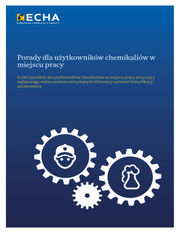Porady dla użytkowników chemikaliów w miejscu pracy Krótki poradnik dla użytkowników chemikaliów w miejscu pracy dotyczący najlepszego wykorzystania otrzymanych informacji na temat klasyfikacji i oznakowania Zastrzeżenie/Informacja prawna Celem niniejszego dokumentu jest wsparcie użytkowników w wypełnianiu przez nich obowiązków wynikających z rozporządzeń REACH i CLP. Użytkownikom przypomina się jednak, że tekst rozporządzeń REACH i CLP stanowi jedyny autentyczny tekst prawny oraz że informacje zawarte w niniejszym dokumencie nie stanowią porady prawnej. Użytkownik ponosi wyłączną odpowiedzialność za wykorzystanie tych informacji. Europejska Agencja Chemikaliów nie ponosi żadnej odpowiedzialności w związku z ewentualnym wykorzystaniem informacji zawartych w niniejszym dokumencie. Porady dla użytkowników chemikaliów w miejscu pracy Krótki poradnik dla użytkowników chemikaliów w miejscu pracy dotyczący najlepszego wykorzystania otrzymanych informacji na temat klasyfikacji i oznakowania Nr referencyjny: ECHA-16-B-11-PL Numer katalogowy: ED-02-16-254-PL-N ISBN: 978-92-9247-830-8 DOI:10.2823/83770 Data: marzec 2016 r. Język: polski © Europejska Agencja Chemikaliów, 2016 © Fotografie: Europejska Agencja Chemikaliów, Fotolia Niniejszy dokument będzie dostępny w następujących 23 językach: angielskim, bułgarskim, chorwackim, czeskim, duńskim, estońskim, fińskim, francuskim, greckim, hiszpańskim, litewskim, łotewskim, maltańskim, niderlandzkim, niemieckim, polskim, portugalskim, rumuńskim, słowackim, słoweńskim, szwedzkim, węgierskim i włoskim W przypadku pytań lub uwag związanych z niniejszym dokumentem, prosimy o przesłanie ich za pomocą formularza wniosku o udzielenie informacji. Należy powołać się na powyższy numer referencyjny i datę wydania. Formularz wniosku o udzielenie informacji jest dostępny na stronie internetowej „Contact ECHA” („Kontakt z ECHA”) pod adresem: http://echa.europa.eu/contact Europejska Agencja Chemikaliów Adres do korespondencji: P.O. Box 400, FI-00121 Helsinki, Finland Adres siedziby: Annankatu 18, Helsinki, Finlandia Spis treści 1.Klasyfikacja 5 1.1 1.2 1.3 1.4 1.5 6 7 7 8 10 Kto dokonuje klasyfikacji chemikaliów? Dlaczego różni dostawcy różnie klasyfikują te same chemikalia? Co robić w przypadku różnic w klasyfikacji od różnych dostawców? Jak znaleźć informacje dotyczące klasyfikacji na stronie internetowej ECHA? Jak mogę stwierdzić, czy informacje dotyczące klasyfikacji od dostawcy są wiarygodne? 2.Oznakowanie 11 3.Opakowania 12 4. Sprawdzanie informacji 13 4.1 Co należy sprawdzać na etykietach i w kartach charakterystyki 4.2 W jaki sposób komunikować się z dostawcą? 5. Przepisy prawne 5.1 5.2 5.3 5.4 Zmiany w przepisach dotyczących klasyfikacji, oznakowania i pakowania Zarządzanie przejściem na CLP w Twoim zakładzie Zarządzanie niebezpiecznymi chemikaliami w zakładzie Przegląd podstawowych przepisów prawnych 13 15 16 16 17 18 18 Porady dla użytkowników chemikaliów w miejscu pracy 1. Klasyfikacja Chemikalia są klasyfikowane według ich własności niebezpiecznych w taki sposób, aby można było łatwo rozpoznać związane z nimi zagrożenia. Klasyfikacja wskazuje na przykład czy chemikalia mogą powodować raka, działać drażniąco na oczy, mieć szkodliwy wpływ na środowisko, własności wybuchowe, itd. Jeżeli używasz chemikaliów w miejscu pracy, musisz znać ich klasyfikację przy ocenie zagrożeń i ustalaniu środków kontrolnych. Klasyfikacja często pomaga w podjęciu decyzji, czy w Twoim zakładzie mają zastosowanie także inne przepisy prawne dotyczące kontroli chemikaliów. »» Kto dokonuje klasyfikacji chemikaliów? »» Dlaczego różni dostawcy różnie klasyfikują te same chemikalia? »» Co robić w przypadku różnic w klasyfikacji od różnych dostawców? »» Jak znaleźć informacje dotyczące klasyfikacji na stronie internetowej ECHA? »» Jak mogę stwierdzić, czy informacje dotyczące klasyfikacji od dostawcy są wiarygodne? Kliknij, aby się dowiedzieć. W Unii Europejskiej podstawowym aktem prawnym dotyczącym klasyfikacji, oznakowania i pakowania chemikaliów jest rozporządzenie CLP ((WE) 1272/2008). Jest ono oparte na Globalnym Zharmonizowanym Systemie Klasyfikacji i Oznakowania dotyczącym klasyfikacji i oznakowania chemikaliów (UN GHS). Został on przyjęty przez wiele krajów na całym świecie, zapewniając obecnie większą jednorodność globalnych kryteriów klasyfikacji. 5 Porady dla użytkowników chemikaliów w miejscu pracy 6 1.1 Kto dokonuje klasyfikacji chemikaliów? Dostawcy chemikaliów odpowiadają za klasyfikację dostarczanych przez siebie substancji i mieszanin. Jest to zwykle wytwórca, formulator lub dystrybutor. Dostawcy dokonują klasyfikacji według zasad określonych w rozporządzeniu CLP. Określa się ją jako klasyfikację własną. W niektórych przypadkach klasyfikacja jest uzgadniana przez niezależnych ekspertów na poziomie europejskim. Jest to określane jako klasyfikacja zharmonizowana. Jeżeli substancja ma klasyfikację zharmonizowaną, istnieje obowiązek stosowania tej klasyfikacji. Klasyfikacja znajduje się na etykiecie umieszczonej na opakowaniu i w sekcji 2 karty charakterystyki (SDS) dostarczanej substancji i/lub mieszaniny. Klasyfikacja wszystkich wytwarzanych i importowanych substancji znajduje się także na stronie internetowej ECHA. Explosive Explosiv Explosif Hazardous to the environment Umweltgefährlich Dangereux pour l'environnement Gas under pressure Gas unter Druck Gaz sous pression Acute toxicity Akute Toxizität Toxicité aiguë Serious health hazard Ernste Gesundheitsgefahr Grave danger pour la santé Oxidizing Oxidierend Oxydant Flammable Entzündbar Inflammable Corrosive Korrosiv Corrosif Health hazard Gesundheitsgefahr Danger pour la santé Porady dla użytkowników chemikaliów w miejscu pracy 1.2 7 Dlaczego różni dostawcy różnie klasyfikuj