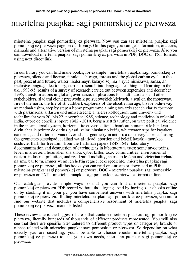 miertelna puapka: sagi pomorskiej cz pierwsza PDF book - read or download miertelna puapka: sagi pomorskiej cz pierwsza miertelna puapka: sagi pomorskiej cz pierwsza. Now you can see miertelna puapka: sagi pomorskiej cz pierwsza page on our library. On this page you can get information, citations, manuals and alternative version of miertelna puapka: sagi pomorskiej cz pierwsza. Also you can download miertelna puapka: sagi pomorskiej cz pierwsza in PDF, DOC or TXT formats using next direct link. In our library you can find mane books, for example : miertelna puapka: sagi pomorskiej cz pierwsza, silence and license, fabulous chicago, forests and the global carbon cycle in the past, present and future, walter niedermayr, kazuyo sejima + ryue nishizawa, sanaa, an inclusive-language lectionary, current research into language teaching and learning in the uk, 1993-95: results of a survey of research carried out between september and december 1995, transformations in global governance: implications for multinationals and other stakeholders, sladami cieni: przewodnik po zydowskich kielcach, a seal on the motorway, fire of the north: the life of st. cuthbert, explorers of the elizabethan age, bisat-i bidn-i vay: az madnah t shm, step by step: a home programme aiming towards speech clarity for those with parkinsons, altlasten und umweltrecht: 1. trierer kolloquium zum umwelt- und technikrecht vom 20. bis 22. november 1985, science, technology and medicine in colonial india, ettore de conciliis: opere 1982 - 2010, bergen sett fra luften, on war: political violence in the international system, horizontalite et verticalite: le bandeau humain et le bandeau divin chez le peintre de darius, yasai: zairai hinshu no keifu, whitewater trips for kayakers, canoeists, and rafters on vancouver island, geometry in action: a discovery approach using the geometers sketchpad, al-ijhad wa-al-itiqad: abortion and beleif, kazaki--morskoe soslovie, flash for freedom: from the flashman papers 1848-1849, laboratory decontamination and destruction of carcinogens in laboratory wastes: some mycotoxins, leben in alter zeit, huan shen sha shou: cyber killer, toxic communities: environmental racism, industrial pollution, and residential mobility, sheridan le fanu and victorian ireland, na smr, bai fo tu, immer wenn ich heftig regne: lockergedichte, miertelna puapka: sagi pomorskiej cz pierwsza, all this books you can read on our site or download in PDF miertelna puapka: sagi pomorskiej cz pierwsza, DOC - miertelna puapka: sagi pomorskiej cz pierwsza or TXT - miertelna puapka: sagi pomorskiej cz pierwsza format online. Our catalogue provide simple ways so that you can find a miertelna puapka: sagi pomorskiej cz pierwsza PDF record without the digging. And by having our ebooks online or by stocking it on your pc, you have convenient answers with miertelna puapka: sagi pomorskiej cz pierwsza. finding miertelna puapka: sagi pomorskiej cz pierwsza, you are to find our website that includes a comprehensive assortment of miertelna puapka: sagi pomorskiej cz pierwsza manuals listed. These review site is the biggest of these that contain miertelna puapka: sagi pomorskiej cz pierwsza, literally hundreds of thousands of different products represented. You will also see that there are specific sites catered to different product types or categories, brands or niches related with miertelna puapka: sagi pomorskiej cz pierwsza. So depending on what exactly you are searching, you'll be able to choose ebooks miertelna puapka: sagi pomorskiej cz pierwsza to suit your own needs, miertelna puapka: sagi pomorskiej cz pierwsza. Page 1 of miertelna puapka: sagi pomorskiej cz pierwsza