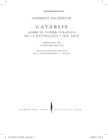 www.elboomeran.com Andrzej Szczeklik C ATA R S I S S O B R E EL P O DE R C U R AT I V O DE L A N AT U R A LEZ A Y DEL A RT E prólogo de czesław miłosz traducción del polaco de j. sławomirski y a. rubió barcelona 2010 INT Catarsis_ACA0196_1aEd.indd 3 a c a n t i l a d o 03/02/10 7:48 t í t u l o o r i g i n a l Katharsis: O uzdrowicielskiej mocy natury i sztuki Publicado por acantilado Quaderns Crema, S. A. U. Muntaner, 4 6 2 - 0 8 0 0 6 Barcelona Tel. 9 3 4 1 4 4 9 0 6 - Fax 9 3 4 1 4 7 1 0 7 [email protected] www.acantilado.es © by Andrzej Szczeklik. La traducción de Catarsis se publica de acuerdo con Społeczny Instytut Wydawniczy znak , Cracovia (Polonia) © de la traducción, 2 0 1 0 by J. Sławomirski y A. Rubió © de la imagen de cubierta y de los grabados, 2 0 0 9 by znak . Imágenes diseñadas por Olgierd Chmielewski. © de esta edición, 2 0 1 0 by Quaderns Crema, S. A. U. Todos los derechos reservados: Quaderns Crema, S. A. U. isbn: 978-84-92649-32-7 depósito legal: b. 5015-2010 a i g u a d e v i d r e Gráfica q u a d e r n s c r e m a Composición r o m a n y à - v a l l s Impresión y encuadernación p r i m e r a e d i c i ó n febrero de 2010 Bajo las sanciones establecidas por las leyes, quedan rigurosamente prohibidas, sin la autorización por escrito de los titulares del copyright, la reproducción total o parcial de esta obra por cualquier medio o procedimiento mecánico o electrónico, actual o futuro—incluyendo las fotocopias y la difusión a través de Internet—, y la distribución de ejemplares de esta edición mediante alquiler o préstamo públicos. INT Catarsis_ACA0196_1aEd.indd 4 03/02/10 7:48 C O N S T EL A C I O NE S La medicina y el arte parten del mismo tronco. Ambos tie- nen origen en la magia, un sistema basado en la omnipotencia de la palabra. Una fórmula mágica, debidamente pronunciada, trae la salud o la muerte, la lluvia o la sequía, evoca los espíritus y revela el porvenir. Remueve vínculos que resultan invisibles para quienes, plenamente confiados, están absortos en sus afanes cotidianos. Los conjuros que se utilizan para «deshacer los hechizos y remediar las enfermedades […] tienen una forma poética llena de aliteraciones y asonancias dignas de la máxima atención de los estudiosos de la literatura». Con la ayuda de la experiencia acumulada por muchas generaciones de sacerdotes y médicos, el arte de la palabra permitió devolver al hombre al lugar que le correspondía J. Stempowski, Chimera jako zwierzę pociągowe, Czytelnik, Varsovia, 2001, t. II , p. 14. INT Catarsis_ACA0196_1aEd.indd 23 03/02/10 7:48 c ata r s i s en el cosmos, un cosmos que hasta finales del siglo x v i i y principios del x v i i i había sido como una música armoniosa. La percepción de una analogía entre la estructura y el ritmo del cosmos y los ritmos del hombre, entre lo que más tarde denominaríamos macrocosmos y microcosmos, inspiró a los filósofos y los médicos durante más de dos milenios. El hombre consonaba con el cosmos, y la enfermedad perturbaba esa consonancia, rompía la armonía, introducía un elemento disonante. A lo largo de la historia, esta concepción del mundo, al igual que los mitos, ha retornado en innumerables versiones. Hipócrates creía que la enfermedad era «una desarmonía que afea la hermosura» y consideraba que «la tarea del médico es restituir la hermosura a las formas del cuerpo». En el siglo x v i , Paracelso interpretó el cosmos como la unión espiritual entre todas las cosas. Sostenía que el universo era un ser viviente que atraviesa las mismas fases de desarrollo que los organismos de nuestro planeta. Adelantándose a la teoría del origen estelar de los elementos que constituyen nuestro cuerpo, vio en el hombre un microcosmos construido con los mismos componentes que el macrocosmos, o sea, el universo. Imaginó el soplo vital divino en una forma que denominó «arqueo», es decir, el «alquimista interno» (innewendige Alchemist) que rige el cuerpo y se encarga de separar en los alimentos lo beneficioso de lo nocivo. La enfermedad consistía en el avasallamiento del Hipokratesa aforyzmy i rokowania oraz przysięga wykonywana przez lekarzy-kapłanów Eskulapa, traducción de H. Łuczkiewicz, Drukarnia Rządowa, Varsovia, 1864, p. 4. Paracelsus, Selected writings, ed. J. Jacobi, Bollingen Series XXVIII , Princeton University Press, Princeton, 1998, p. 47. INT Catarsis_ACA0196_1aEd.indd 24 03/02/10 7:48 constelaciones arqueo a manos de poderes espirituales ajenos. La curación equivalía a liberarlo de la opresión mediante la naturaleza, a la que socorría el arte de utilizar los arcanos. Quien se sienta tentado de sonreír con indulgencia ante estos intentos por captar la esencia de la enfermedad debería recordar que todavía hoy el problema en cuestión presenta grandes dificultades. En el año 1972, varios especialistas en el estudio del asma, procedentes de todas las partes del mundo, se reunieron en un hermoso balneario de montaña. Se plantearon un único reto: definir la enfermedad. Pasada una semana, todos regresaron a sus respectivos países sin haberlo conseguido. A partir de entonces, algunos comités internacionales de lo más excelsos han propuesto dos definiciones del asma radicalmente opuestas. Y eso que, en la práctica cotidiana, los médicos no suelen tener dificultad alguna en diagnosticar esta enfermedad. A veces lo consiguen incluso antes de arrimar el fonendoscopio a la zona bronquial. Les basta con oír la respiración prolongada y sibilante del enfermo, cuyo eco resuena en la onomatopeya «asma». Quien utilizó esta palabra por primera vez fue Homero. La usó en la descripción de la muerte de Héctor, que, tendido en el suelo al pie de las murallas de Troya, padeció una disnea terrible (asmati). ¿Acaso no recuerda la partícula inicial «¡ha! (-sma)» la respiración prolongada de un asmático? Para diagnosticar una enfermedad nos basamos en los síntomas, y no en las 