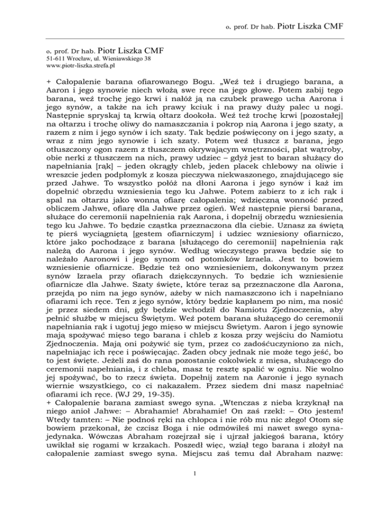 Całopalenie - prof. Dr hab. Piotr Liszka CMF