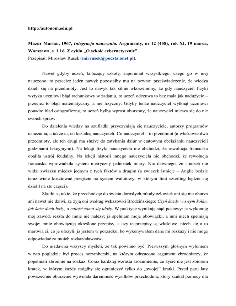 http://autonom.edu.pl Mazur Marian, 1967, Integracja nauczania