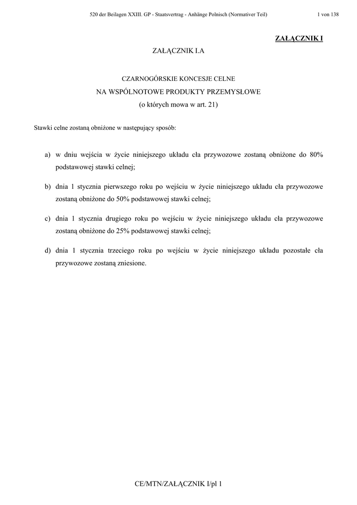 CE/MTN/ZAŁĄCZNIK I/pl 1 ZAŁĄCZNIK I ZAŁĄCZNIK IA