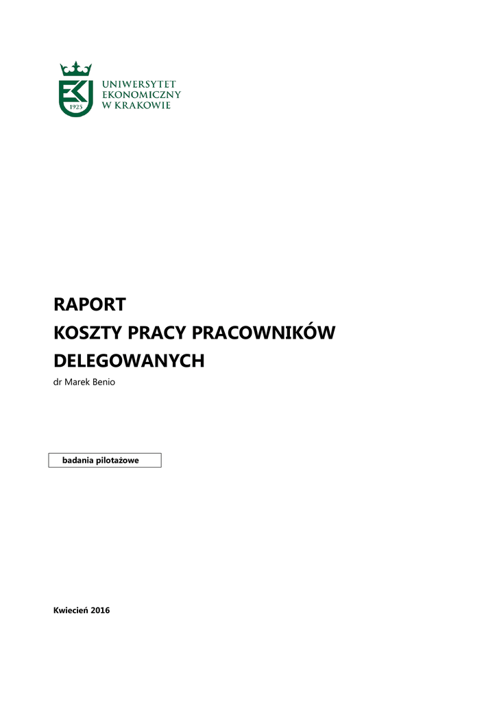 RAPORT KOSZTY PRACY PRACOWNIKÓW DELEGOWANYCH dr Marek Benio badania pilotażowe Kwiecień 2016 TŁO I UZASADNIENIE POTRZEBY BADAŃ Delegowanie pracowników w ramach swobody świadczenia usług na jednolitym rynku Unii Europejskiej jest szczególną formą mobilności pracy, w której praca jest nośnikiem usługi. Praca za granicą nie wiąże się w tym przypadku z koniecznością trwałej migracji zarobkowej do innego państwa członkowskiego. Posiada za to wszystkie zalety pracy za granicą, gdzie zarabia się więcej oraz wszystkie zalety pozostania w kraju, gdzie wydaje się mniej. Taka oczywista korzyść występuje naturalnie tylko w przypadku różnicy w poziomie rozwoju gospodarczego państwa, w którym ma siedzibę usługodawca i państwa, na terenie którego świadczona jest usługa. Pod tym względem Unia Europejska jest wyraźnie, choć nie bez wyjątków, podzielona na państwa wysyłające i państwa przyjmujące. Do pierwszej grupy zaliczyć należy przystępujące do UE od 2004 r. państwa Europy Środkowo Wschodniej, a po kryzysie roku 2008 także państwa Półwyspu Iberyjskiego. Najwięcej pracowników delegują usługodawcy mający swoją siedzibę w Polsce. Do drugiej grupy należą państwa tzw. starej piętnastki, w szczególności Niemcy, Francja, Belgia, Holandia, kraje nordyckie, Wielka Brytania i Włochy. Francję i Niemcy, które po Polsce delegują najwięcej pracowników należałoby zakwalifikować do obu grup. Te dwa państwa przyjmują też największą liczbę pracowników delegowanych z innych państw. Liczba delegowanych i przyjmowanych pracowników w zasadzie bilansuje się. Na ich tle Polska jest największym eksporterem usług netto w Unii Europejskiej, zaś Belgia największym importerem usług netto. Delegowanie pracowników, poza ważną funkcją alokacji zasobów pracy, zawiera także niezwykle ważne, bo oparte o gospodarkę rynkową, narzędzie polityki spójności Unii Europejskiej. Usługi świadczone przez zagraniczne firmy usługowe zamawiane są zwykle tam, gdzie brakuje lokalnego usługodawcy. Przyczynia się do stopniowego zmniejszania różnic w rozwoju gospodarczym państw „starej” i „nowej” Unii, wzmacniając jednocześnie konkurencyjność zewnętrzną UE w gospodarce światowej. Efekt spójności będzie tym silniejszy im bardziej dynamicznie rozwijać się będą usługi transgraniczne świadczone przez usługodawców z „nowych” państw UE. Jednocześnie delegowanie pracowników zapobiega lub zmniejsza efekt drenażu kapitału ludzkiego z postsocjalistycznych państw członkowskich, w których kapitał ludzki jest jedynym kapitałem. Rozwój usług transgranicznych jest w interesie całej Unii Europejskiej, sprzyja integracji i wyrównywaniu poziomu rozwoju gospodarczego „w górę”. Propagowanie mobilności pracy, opartej m.in. o swobodę świadczenia usług jest jednym z priorytetowych zadań Komisji Europejskiej. Zasady, na których opiera się swoboda świadczenia usług i konieczne dla jej realizacji delegowanie pracowników zostały wypracowane z największym trudem. Znoszenie barier w swobodnym świadczeniu usług zajęło Wspólnocie najwięcej czasu (na tle innych wolności UE) i trudno mówić dziś o zakończeniu tego procesu. Punktem zwrotnym w historii swobody świadczenia usług okazał się wyrok ETS w sprawie Rush Portughesa, w którym Trybunał podkreślił, że pracownicy czasowo wykonujący usługę na terenie innego państwa członkowskiego nie uzurpują sobie prawa do miejsc pracy w tym państwie, ponieważ po wykonaniu usługi wracają do kraju. Po względnym uspokojeniu nastrojów protekcjonistycznych i powszechnym uznaniu, że ze strony pracowników delegowanych nie należy obawiać się dumpingu socjalnego, doszło do uchwalenia dyrektywy 96/71/WE w sprawie pracowników delegowanych, zwanej dalej dyrektywą podstawową. Nie wdając się w szczegóły, które nie powinny być przedmiotem tego opracowania, regulacje dotyczące prawa pracy i ubezpieczeń społecznych w przypadku pracowników delegowanych pozwalają im zarabiać za granicą znacznie wyższe wynagrodzenie niż za tę samą pracę otrzymaliby w kraju. Jednocześnie koordynacja systemów zabezpieczenia społecznego chroni ich przed fragmentaryzacją okresów ubezpieczeniowych pomiędzy różnymi systemami i pozwala na pozostanie w ubezpieczeniu społecznym jednego państwa mimo czasowego wykonywania pracy w innym państwie lub mimo pracy naprzemiennej wykonywanej na terenie dwóch lub więcej państw członkowskich. Ten mądry kompromis sprzyjający mobilności usług utrzymywał się do 2016 roku. W międzyczasie ochrona praw pracowników delegowanych została znacznie wzmocniona przez uchwalenie tzw. dyrektywy wdrożeniowej w 2014 roku. Upoważniono państwa członkowskie do stosowania rozległego zestawu środków kontrolnych mających na celu wyeliminowanie nieuczciwych podmiotów używających delegowania 9 pracowników jako zasłony dla delegowania zwrotnego, fałszywego samozatrudnienia czy nadużywania systemów zabezpieczeń społecznych przez tworzenie firm skrzynek pocztowych. Dyrektywa wzmocni też współpracę transgraniczną instytucji kontrolnych pozwalając m.in. na wykorzystanie systemu IMI. Ułatwi ona także transgraniczną egzekucję kar i grzywien. Nade wszystko jednak przyczyni się do poprawy zaufania wobec prawa oraz do pewności obrotu poprzez zwolnienie usługodawców z odpowiedzialności za nieznajomość prawa w przypadku gdy nie znalazło się ono na oficjalnej stronie internetowej, które każde państwo członkowskie ma obowiązek stworzyć z myślą o pracownikach delegowanych i ich pracodawcach z innych państw członkowskich. Okres na transpozycję zapisów dyrektywy wdrożeniowej do porządków prawnych państw członkowskich upływa w czerwcu 2016 roku. Monitorowanie skutków tej regulacji, a zwłaszcza praktyk administracyjnych wprowadzanych na jej podstawie zabierze co najmniej kolejne dwa l
