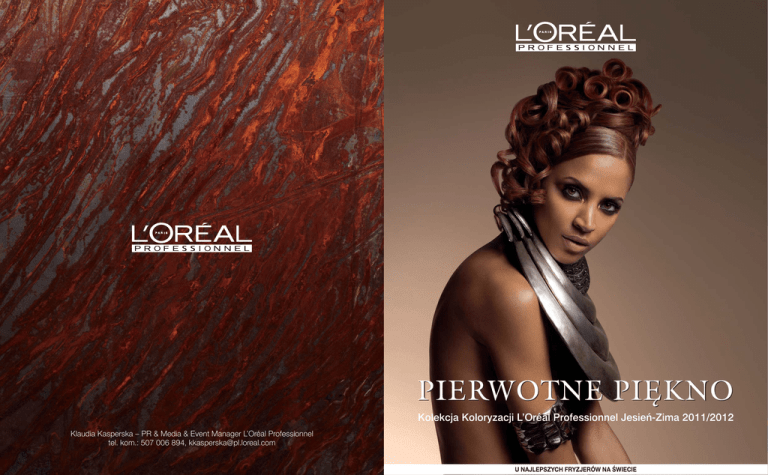 PIERWOTNE PI¢KNO Kolekcja Koloryzacji L’Oréal Professionnel Jesień-Zima 2011/2012 Klaudia Kasperska – PR & Media & Event Manager L’Oréal Professionnel tel. kom.: 507 006 894, [email protected] 10. urodziny Kolekcji Koloryzacji L’Oréal Professionnel Dziesi´ç lat temu marka L’Oréal Professionnel wprowadziła na rynek swojà pierwszà kolekcj´ koloryzacji, dzi´ki czemu dostarczyła fryzjerom-stylistom inspiracji i pomysłów w dziedzinie koloryzacji i stylizacji włosów. W 2011 roku marka L’Oréal Professionnel postanowiła uczciç t´ rocznic´ i bardziej ni˝ kiedykolwiek zaakcentowaç iÊcie alchemiczny charakter relacji pomi´dzy fryzjerem/fotografem/modelkà, a tak˝e podkreÊliç olÊniewajàce efekty ich synergii. Do sfotografowania tej wyjàtkowej 10 kolekcji, marka L’Oréal Professionnel zaprosiła Êwiatowej sławy fotografów modowych, którzy razem z nami celebrujà tegorocznà kolekcj´. Poni˝ej prezentujemy poprzednie kolekcje, które pozwoliły naszej marce wybiç si´ na pozycj´ „trendsettera” w Êwiecie fryzjerstwa. Inspiracje kolekcji koloryzacji PIERWOTNE PI¢KNO jesieƒ-zima 2011/2012 Temat przewodni tej urodzinowej kolekcji zaprasza nas do zanurzenia si´ w samym sercu pi´kna: urody kobiety dzikiej i opanowanej. Pi´kno rodzi si´ z natury. Bohaterki plenerowych sesji mody sà pi´kne, naturalne i wolne. Tło tych fotografii sprawia, ˝e przenosimy sie w rozległe, dziewicze przestrzenie. Ze zdj´ç fryzur emanuje poczucie siły, zwiàzane z czystà i nieposkromionà energià witalnà modelek. Magazyny mody proponujà stylizacje podkreÊlajàce obj´toÊç, dynamik´ lub kr´te pukle w połàczeniu z grà Êwiatłem, która podkreÊla mistyczny lub niewinny charakter urzekajàcych modelek. Fryzury sà «rzeêbione» jako surowe, minimalistyczne, lekkie lub brutalnie ciosane formy, lecz zawsze otaczajà twarz kobiety o nieujarzmionej urodzie. ArtyÊci szukajà natchnienia w naturze, aby ukazaç drzemiàce w nas pierwotne instynkty. Wilki oraz grzyby symbolizujà i wyra˝ajà szczególnà stron´ ludzkiej to˝samoÊci. Âwiat mody Szlachetne materiały i naturalne odcienie podkreÊlajà „dzikie” trendy w pokazach kolekcji na sezon jesieƒ-zima 2011/2012. Domy mody, zainspirowane mitami o amazonkach oraz bogactwami natury, prezentujà pełne przepychu kreacje z piór, wyprawionych skór, haftów, pereł i przejrzystych materiałów. W rzemioÊle artystycznym jako materiały stosuje si´ obecnie kamieƒ, drewno oraz skór´. Projektanci bi˝uterii oraz sztuki u˝ytkowej stosujà materiały surowe i szlachetne jednoczeÊnie, aby tworzyç z nich akcesoria o czystych lub celowo niedoskonałych liniach. Baza jasna W bie˝àcym sezonie, kolekcja koloryzacji L’Oréal Professionnel jesieƒ-zima 2011/2012 celebruje pierwotne pi´kno. To hołd zło˝ony temu, co w nas dzikie i nieskalane, pochodzàce wprost z natury. Nasze odcienie z kolekcji Pierwotne Pi´kno uosabiajà dziedzictwo nieujarzmionej urody. Odwołujà si´ do płynàcej gł´boko z wewnàtrz siły witalnej, która odsłania naszà prawdziwà natur´. Portrety promujàce kolekcj´ jak ikony przywodzà na myÊl figury emblematyczne: stra˝niczka czasu, kapłanka Êwiatła lub legendarna amazonka. Te 3 boginie sà współczesnà inkarnacjà dzikiej i nieskalanej duszy. Oczywistym wyborem stylistów b´dà tu akcesoria w stylu ozdób dawnych plemion, noszone na nagiej skórze i symbolizujàce połàczenie czystoÊci i surowoÊci. Makija˝ staje si´ czysty i głównie skupia si´ na podkreÊleniu ekspresji oraz siły spojrzenia. Odcienie tej kolekcji, inspirowane kolorami wyprawionej skóry oraz ró˝nych rodzajów ziemi, przywodzà na myÊl pierwotne, naturalne barwy. Od ochry pustynnego piasku do kasztanowego koloru ciemnej skóry, odcienie lansowane tej zimy charakteryzujà si´ ˝ywymi, autentycznymi tonami. LEGENDARNA AMAZONKA Niczym druidowie celtyckich plemion dumnie nosi swoje długie, mi´kko opadajàce włosy (INOA 9.32), przetykane na całej długoÊci pasemkami w kolorze ochry (INOA 7.44) oraz białej glinki (INOA 10.21). Ten look kontrastuje z jej postawà wojowniczki. Jest niczym nieoszlifowany diament, który ukazuje swoje dwie strony: łagodnoÊç i moc. Prawa autorskie zastrze˝one – Zdj´cia: Dusan Reljin, Zdj´cia dodatkowe: Yves J. Hayat, Fryzury: Valentin Mordacq, Stylizacja: Sissy Vian, Makija˝: Lloyd Simmonds PIERWOTNE PI¢KNO Baza Êrednia Baza ciemna STRA˚NICZKA CZASU KAPŁANKA ÂWIAT¸A Od gładkiego konturu do skomplikowanej korony splotów, ta fryzura, na bazie INOA 7.31, rozwija si´ dwuetapowo. Wygładzona z przodu, ozdobiona pasemkami w odcieniu INOA 8.23, z tyłu uwalnia kaskad´ precyzyjnych loków, z refleksami w odcieniu INOA 7.42, które dodajà twarzy łagodnoÊci. Ta fryzura cechuje si´ dzikim, a jednoczeÊnie kontrolowanym przepychem. To nowa interpretacja boba w stylu fryzur indiaƒskich plemion Ameryki Południowej. Na bazie INOA 4.3 nało˝ono szerokie pasmo w kolorze granatu (INOA 5.60) oraz kilka purpurowych pasemek (INOA 5.25), które dodajà fryzurze ˝ycia i blasku. Taki neoklasyczny bob jest idealny dla kobiet o szczupłych, delikatnych twarzach. WSPÓŁTWÓRCY GŁÓWNYCH WIZERUNKÓW KOLEKCJI Fryzjer VALENTIN MORDACQ Fotograf DUSAN RELJIN Zaledwie par´ miesi´cy po zakoƒczeniu edukacji Valentin Mordacq pracował ju˝ jako asystent Gin, fryzjerskiej gwiazdy w salonie Dessange w latach 70. Bardzo szybko jego pogodne usposobienie i zwariowane pomysły otworzyły mu drzwi do studiów najbardziej znanych fotografów. Jednak to Guy Bourdin go zatrudnił, i wspólnie pracowali przez kolejne szeÊç lat dla Vogue France. U boku fotografa Hansa Feurera wprowadził on mod´ na chustki-bandany. Dla potrzeb swoich pokazów Marithé + Francois Girbaud poprosili go o zaprojektowanie chustek do noszenia na włosach. W wieku 16 lat, Dusan Reljin wyjechał na stałe do Norwegii, gdzie uczył si´ w mi´dzynarodowym liceum w Oslo i specjalizował w 