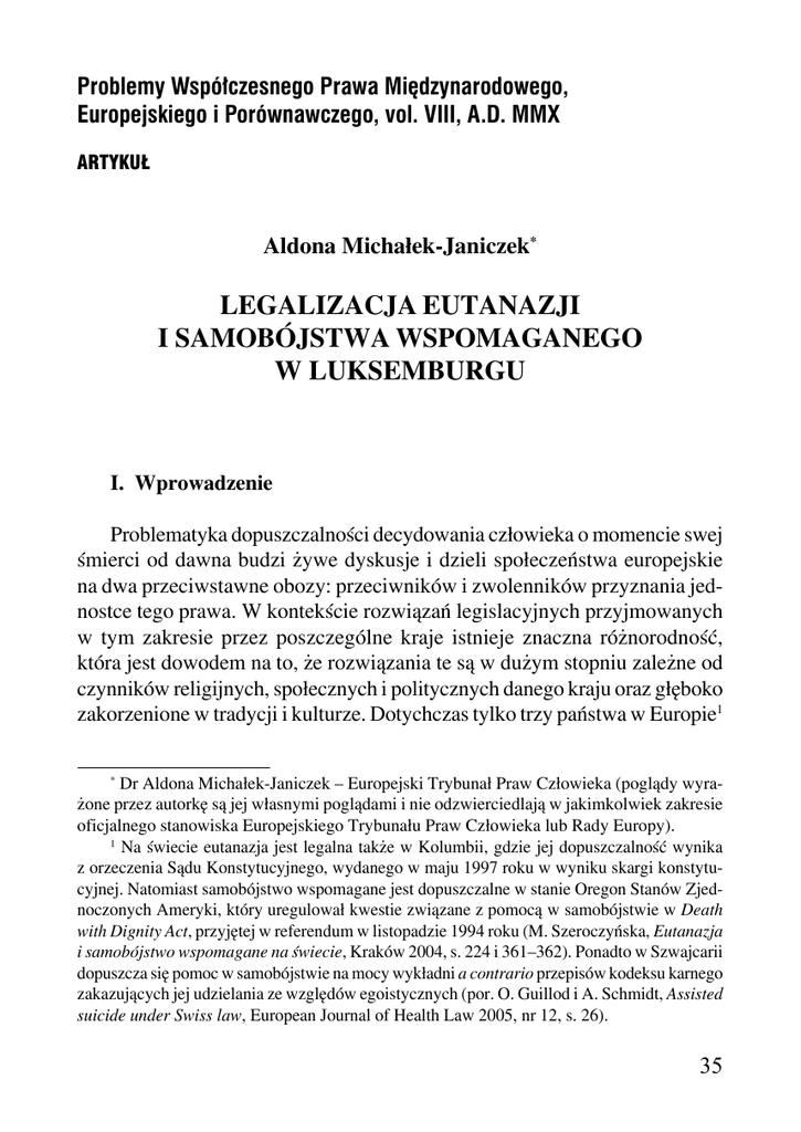 Problemy Współczesnego Prawa Międzynarodowego, Europejskiego i Porównawczego, vol. VIII, A.D. MMX ARTYKUŁ Aldona Michałek-Janiczek* LEGALIZACJA EUTANAZJI I SAMOBÓJSTWA WSPOMAGANEGO W LUKSEMBURGU I. Wprowadzenie Problematyka dopuszczalności decydowania człowieka o momencie swej śmierci od dawna budzi żywe dyskusje i dzieli społeczeństwa europejskie na dwa przeciwstawne obozy: przeciwników i zwolenników przyznania jednostce tego prawa. W kontekście rozwiązań legislacyjnych przyjmowanych w tym zakresie przez poszczególne kraje istnieje znaczna różnorodność, która jest dowodem na to, że rozwiązania te są w dużym stopniu zależne od czynników religijnych, społecznych i politycznych danego kraju oraz głęboko zakorzenione w tradycji i kulturze. Dotychczas tylko trzy państwa w Europie1 Dr Aldona Michałek-Janiczek – Europejski Trybunał Praw Człowieka (poglądy wyrażone przez autorkę są jej własnymi poglądami i nie odzwierciedlają w jakimkolwiek zakresie oficjalnego stanowiska Europejskiego Trybunału Praw Człowieka lub Rady Europy). 1 Na świecie eutanazja jest legalna także w Kolumbii, gdzie jej dopuszczalność wynika z orzeczenia Sądu Konstytucyjnego, wydanego w maju 1997 roku w wyniku skargi konstytucyjnej. Natomiast samobójstwo wspomagane jest dopuszczalne w stanie Oregon Stanów Zjednoczonych Ameryki, który uregulował kwestie związane z pomocą w samobójstwie w Death with Dignity Act, przyjętej w referendum w listopadzie 1994 roku (M. Szeroczyńska, Eutanazja i samobójstwo wspomagane na świecie, Kraków 2004, s. 224 i 361–362). Ponadto w Szwajcarii dopuszcza się pomoc w samobójstwie na mocy wykładni a contrario przepisów kodeksu karnego zakazujących jej udzielania ze względów egoistycznych (por. O. Guillod i A. Schmidt, Assisted suicide under Swiss law, European Journal of Health Law 2005, nr 12, s. 26). * 35 dokonały depenalizacji eutanazji i samobójstwa wspomaganego,2 czyli czynów, które prowadzą do zakończenia życia na żądanie nieuleczalnie chorego i cierpiącego człowieka. Pierwsza była Holandia, która dokonała depenalizacji w 2002 roku. Śladem Holandii podążyła w 2003 roku Belgia, a w 2009 roku Luksemburg. Przedmiotem niniejszego artykułu będą luksemburskie przepisy depenalizacyjne i droga do ich wprowadzenia. Na wstępie należy podkreślić, że pozostałe kraje europejskie utrzymują w tym zakresie zakaz, przyjmując jednakże różne rozwiązania legislacyjne. W odniesieniu do eutanazji jej karalność znajduje podstawę w przepisach sankcjonujących zabójstwo zwykłe (np. Francja, Wielka Brytania, Szwecja, Czechy, czy Lichtenstein) lub w przepisach przewidujących zabójstwo eutanatyczne jako uprzywilejowany typ zabójstwa (np. Niemcy, Włochy, Austria, Dania, Finlandia, Portugalia, Norwegia, Polska, Szwajcaria, Grecja). W odniesieniu do samobójstwa wspomaganego porządki prawne mogą karać je w oparciu o przepisy dotyczące nieudzielania pomocy osobie znajdującej się w niebezpieczeństwie (np. Francja, Niemcy) lub mogą wprowadzać specjalny typ przestępstwa pomocy w samobójstwie (np. Wielka Brytania, Hiszpania, Włochy, Portugalia, Austria, Grecja, Dania, Norwegia, Czechy).3 II. Debata publiczna nad eutanazją i samobójstwem wspomaganym oraz prace parlamentarne Debata w parlamencie luksemburskim, a następnie prace nad ustawodawstwem depenalizującym trwały 13 lat i doprowadziły do przyjęcia w dniu 16 marca 2009 roku ustawy w dużym stopniu zbieżnej z przepisami 2 Samobójstwo medycznie wspomagane jest pojęciowo bardzo bliskie eutanazji i w wielu przypadkach rozróżnienie tych dwóch rodzajów działań jest trudne. Cechą odróżniającą jest fakt, że w przypadku samobójstwa wspomaganego chory sam dokonuje ostatecznego aktu spowodowania śmierci, natomiast podczas eutanazji aktu tego dokonuje lekarz. W przypadku samobójstwa wspomaganego udział lekarza w doprowadzaniu do śmierci pacjenta jest zatem pośredni (por. raport kanadyjskiego senatu De la vie et de la mort – rapport final du comité spécial du Sénat sur l’euthanasie et l’aide au suicide, zamieszczony na stronie internetowej: www.parl.gc.ca). 3 Dane na temat rozwiązań przyjętych w poszczególnych krajach pochodzą z opublikowanego 20 stycznia 2003 roku raportu Komitetu kierowniczego ds. bioetyki Rady Europy (CDBI) dotyczącego prawa i praktyki w zakresie eutanazji i innych decyzji związanych z końcem życia (dokument zamieszczony na stronie internetowej Rady Europy: http://www.coe.int/). 36 obowiązującymi w Belgii4 i Holandii.5 W 1989 roku, jeszcze zanim temat legalizacji eutanazji i samobójstwa wspomaganego pojawił się w kalendarzu prac luksemburskiego parlamentu, powstały dwa stowarzyszenia zajmujące się problematyką końca życia człowieka, a w szczególności łagodzenia cierpienia i towarzyszenia umierającym. Te dwa stowarzyszenia kierują się jednak odmienną filozofią. Pierwsze z nich – ADMD-L (Association pour le droit de mourir en dignité – Luxemburg/ Stowarzyszenie na rzecz prawa do umierania w godności – Luksemburg) ujmuje prawo do umierania w godności jako prawo do decydowania o momencie własnej śmierci, podczas gdy stowarzyszenie Omega 90 wspiera medycynę paliatywną i pozostaje ostrożne w kwestii eutanazji i samobójstwa wspomaganego.6 Publiczną debatę nad legalizacją eutanazji i samobójstwa wspomaganego otworzyła w 1996 roku interpelacja poselska złożona przez Jeana Hussa, jednego z dwóch autorów przedstawionego później projektu ustawy depenalizacyjnej. W wyniku tej pierwszej debaty w Izbie Deputowanych powołano specjalną Krajową Komisję Konsultacyjną ds. Etyki (Commission Consultative Nationale d’Ethique), powierzając jej zdefiniowanie działań, jakie należy podjąć w przyszłości w zakresie zasadniczych kwestii dotyczących śmierci osoby znajdującej się w terminalnym stadium poważnej i nieuleczalnej choroby. W lutym 1998 roku Krajowa Kom