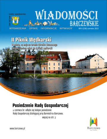 NR 6 (236) czerwiec 2013 Posiedzenie Rady Gospodarczej 4 czerwca br. odbyło się kolejne posiedzenie Rady Gospodarczej działającej przy Burmistrzu Barczewa. więcej na str. 3 Barczewo w obiektywie Dziś prezentujemy naszym Czytelnikom dwie fotografie przedstawiające to samo miejsce z widokiem na kościół św. Anny i Szczepana. Pierwszą fotografię wykonaną po 1936 roku otrzymaliśmy od Czytelnika zamieszkałego w Niemczech. Miejsce wykonania fotografii to ul. Niepodległości. Po prawej stronie widoczny jest nieistniejący dziś budynek gospodarczy, należący wówczas do także nieistniejącego już dawnego Szpitala św. Antoniego, przypisanego do ul. Niepodległości 7. Druga fotografia wykonana została w 2013 roku, z tego samego miejsca. Jakie zmiany się dokonały od wykonania pierwszej fotografii do drugiej, nie musimy chyba nikogo przekonywać . Tekst i foto. W. Zenderowski Zapraszamy od 15.07 do 9.08 na Wakacje dla dzieci z Centrum Kultury w Barczewie W związku ze zbliżającym się sezonem urlopowym, wzorem lat ubiegłych, łączone wakacyjne wydanie gazety samorządowej ukaże się pod koniec sierpnia 2013 r. Życzę Państwu pieknej, słonecznej pogody i udanych wakacji. Redaktor naczelny Wiadomości Barczewskich Mariola Łukowska - Juckiewicz 7 czerwca 2013 r. w Kronberg zmarła Zofia Hirt (z domu Sielawa) Pogrążona w żałobie rodzina WIADOMOSCI BARCZEWSKIE Wydanie bieżące i numery archiwalne dostępne są w Biurze Informacji, w Barczewie przy ul. Mickiewicza 12 oraz na www.gazeta.barczewo.pl Współpraca: M. Łowkiel, A. Malinowski, T. Tucka, J. Dzioba, E. Mika, B. Caruk, S. Kwiatkowski, W. Zdaniuk, B. Silska Redaktor naczelny: Mariola Łukowska-Juckiewicz e-mail: [email protected] Redaktor Grzegorz Gawrylczyk Redaktor Anna Rok Redaktor Natalia Machałek Redaktor Wojciech Zenderowski e-mail: [email protected] Skład DTP: Zbigniew Kozłowski e-mail: [email protected] Wydawca: Centrum Kultury i Promocji Gminy Adres: Barczewo, ul. Słowackiego 5 Tel. / fax. 89 514 82 81 Druk: Zakład ALGRAF s.c., 11-300 Biskupiec, ul Harcerska 19 Redakcja nie ponosi odpowiedzialności za treść ogłoszeń i reklam, nie zwraca tekstów nie zamówionych oraz zastrzega sobie prawo skracania i opracowywania tekstów. Redakcja informuje o możliwości zamieszczenia reklam. www.gazeta.barczewo.pl ZDJĘCIE NA ODKŁADCE: ZBIGNIEW RAMSKO KOZŁOWSKI 2 GAZETA SAMORZĄDOWA 6 (236) czerwiec 2013 Urząd Miejski informuje Z posiedzenia Rady Gospodarczej przy Burmistrzu Barczewa… 4 czerwca 2013 r. odbyło się kolejne posiedzenie Rady Gospodarczej działającej przy Burmistrzu Barczewa. Tym razem miejscem posiedzenia była sala konferencyjna firmy „Tewes Bis” w Barczewie, której właściciel Janusz Skowroński jest przewodniczącym barczewskiej Rady Gospodarczej. Porządek obrad liczył cztery punktu. Pierwszy punkt dotyczył oznakowania szlaku kajakowego. Wykonawcą tablic informacyjnych jest olsztyński PTTK. Janusz Skowroński bardzo prosił o maksymalne przyspieszenie prac tak, aby znaki zostały umieszczone jeszcze przed początkiem sezonu turystycznego. Miejmy nadzieję, że znaki pomagające w korzystaniu ze szlaku kajakowego, który ma aż 52 km długości, pojawią się jak najszybciej. Drugi punkt był konsultacjami w sprawie delegowania przedstawiciela Rady Gospodarczej do składu Rady Nadzorczej Zakładu Usług Komunalnych w Barczewie. Mirosław Kozłowski, w imieniu członków Rady Gospodarczej, zaproponował na to stanowisko Janusza Skowrońskiego. Prezes „Tewes Bis” przyjął propozycję, dziękując jednocześnie za zaufanie. Wiedza i doświadczenie biznesowe Janusza Skowrońskiego na pewno przydadzą się barczewskiemu ZUK-owi. Od kilku miesięcy ZUK ma także nowego prezesa w osobie Beaty Szewczyk, byłej księgowej tej firmy. Mieszanka - energii i wiedzy Pani Beaty z doświadczeniem członków Rady Nadzorczej na pewno dobrze wróżą barczewskiemu ZUKowi. Tym bardziej, że nasza gmina, jak i reszta kraju, jest w przededniu istotnych zmian jeśli chodzi o odbiór śmieci. Począwszy od 1 lipca odbiorem i zagospodarowaniem odpadów komunalnych z terenu gminy Barczewo będzie zajmować się firma EKO z Biskupca. To właśnie ta firma wygrała przetarg, w którym udział wzięły 3 firmy - olsztyński Remondis, barczewski ZUK i biskupieckie EKO. Firma z sąsiedniej gminy zaoferowała najniższą cenę. Umowa zostanie podpisana na okres 6 miesięcy. Barczewski ZUK i tak nadal będzie obsługiwał odbiór śmieci z barczewskich firm i przedsiębiorstw m.in. Zakładu Karnego w Barczewie. Będzie to ogólnie ok. 35 % rynku odbioru śmieci w naszej gminie. Ponadto barczewski ZUK zajmuje się również innymi przedsięwzięciami. Ostatnio m.in. ułożył chodnik na ul. Wojska Polskiego w Barczewie. Trzeci punkt obrad dotyczył stanu zaawansowania przystąpienia Barczewa do stowarzyszenia miast Cittaslow. Członkowie rady dowiedzieli się jakie są wskazania dotyczące tego przystąpienia pod kątem propozycji dla przedsiębiorców. Sieć miast dobrego życia oferuje bardzo dużo korzyści np. jeśli chodzi o promocję miasta lub środki na rewitalizację. Wpisowe wynosi zaledwie 600 Euro, a roczna opłata członkowska to 1.500 Euro. Koszty niewielkie, które niebawem mocno zaprocentują. Samo uczestnictwo naszej gminy w tak zaszczytnym gronie pokazuje, że Barczewo nie pozostaje w tyle. To właśnie za sprawą pomarańczowego ślimaka, symbolu Cittaslow, usłyszą o nas w najdalszym zakątku Europy i świata. Dla przykładu folder lub przewodnik turystyczny, opatrzony logo Cittaslow, będzie przedstawiał Barczewo i jego zalety. Miasto otrzyma taką promocję zupełnie bezpłatnie. Obecnie sieć Cittaslow zrzesza 10 miast z Polski i 176 z całego świata. Zgodnie z przewidywaniem tylko 15 miast z Polski wstąpi do Cittaslow. Już wiadomo, że w tym elitarnym gronie nie zabraknie Barczewa. 25 kwietnia 2013 r. Ministerstwo Spraw Zagranicznych wydało zgodę na przystąpienie Ba