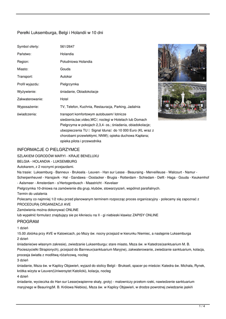 Pocieszycielki Strapionych), przejazd do Banneux(sanktuarium Maryjne), zakwaterowanie, zwiedzanie sanktuarium, kolacja,