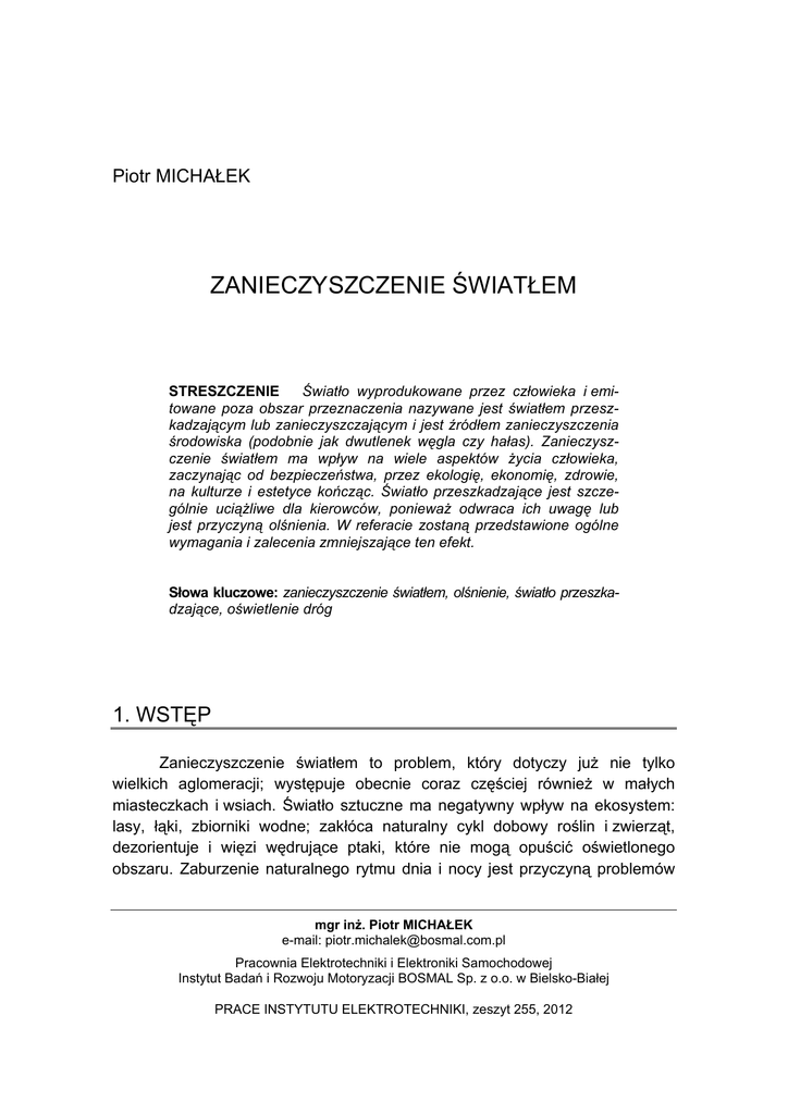 ZANIECZYSZCZENIE ŚWIATŁEM - Instytut Elektrotechniki