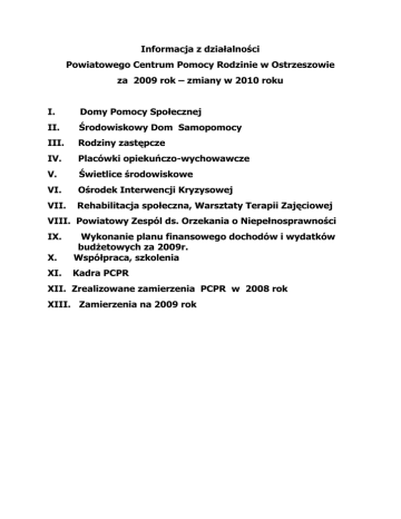 XII. Zrealizowane zamierzenia PCPR-u w 2009 roku
