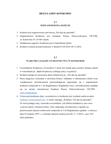regulamin konkursu - Fundacja Pomoc Pokrzywdzonym VICTIM