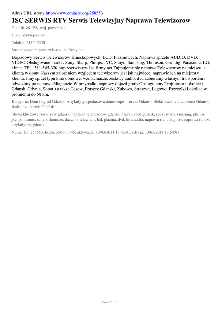 1SC SERWIS RTV Serwis Telewizyjny Naprawa