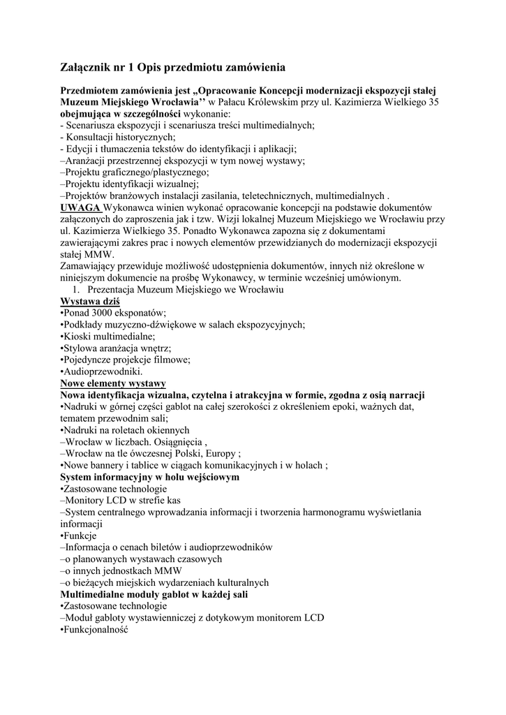 Opis przedmiotu zamówienia - Muzeum Miejskie Wrocławia