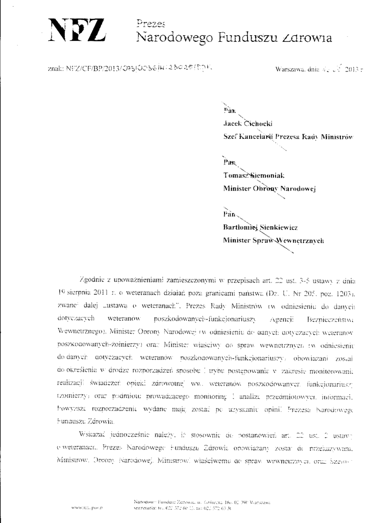 Pismo z uwagamii NFZ