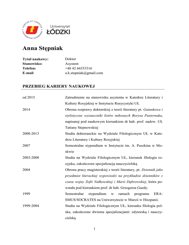 Anna Stępniak - Instytut Rusycystyki UŁ