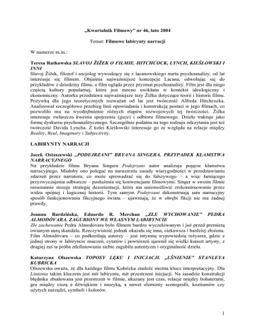1 „Kwartalnik Filmowy” nr 46, lato 2004 Temat: Filmowe labirynty