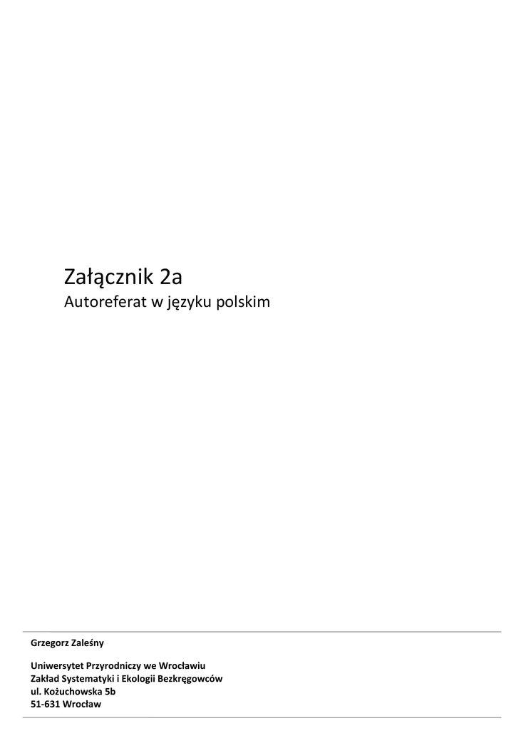 Autoreferat - Wydział Nauk Biologicznych