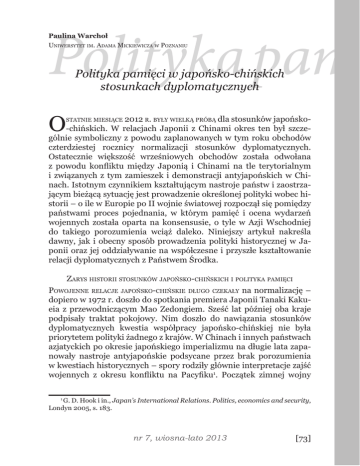 Polityka pamięci w japońsko-chińskich stosunkach dyplomatycznych