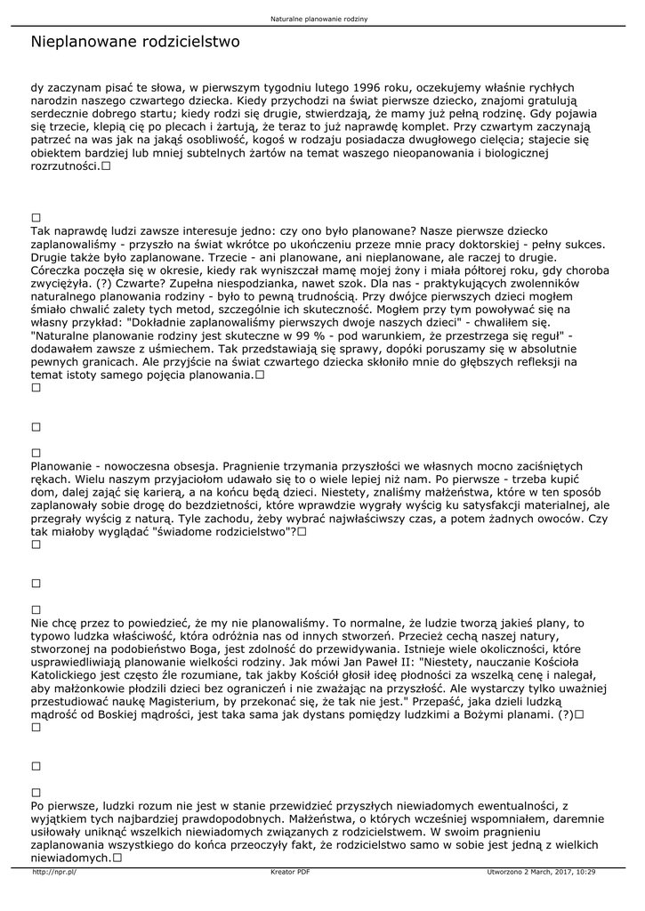 naturalnego planowania rodziny - było to pewną trudnością. Przy dwójce pierwszych dzieci mogłem