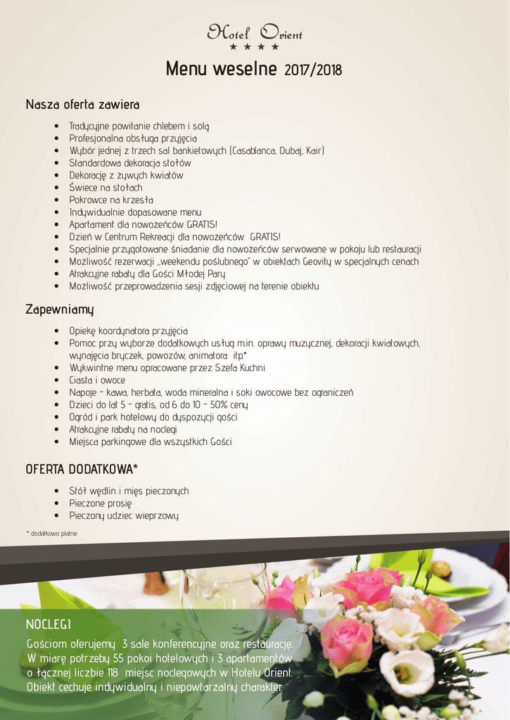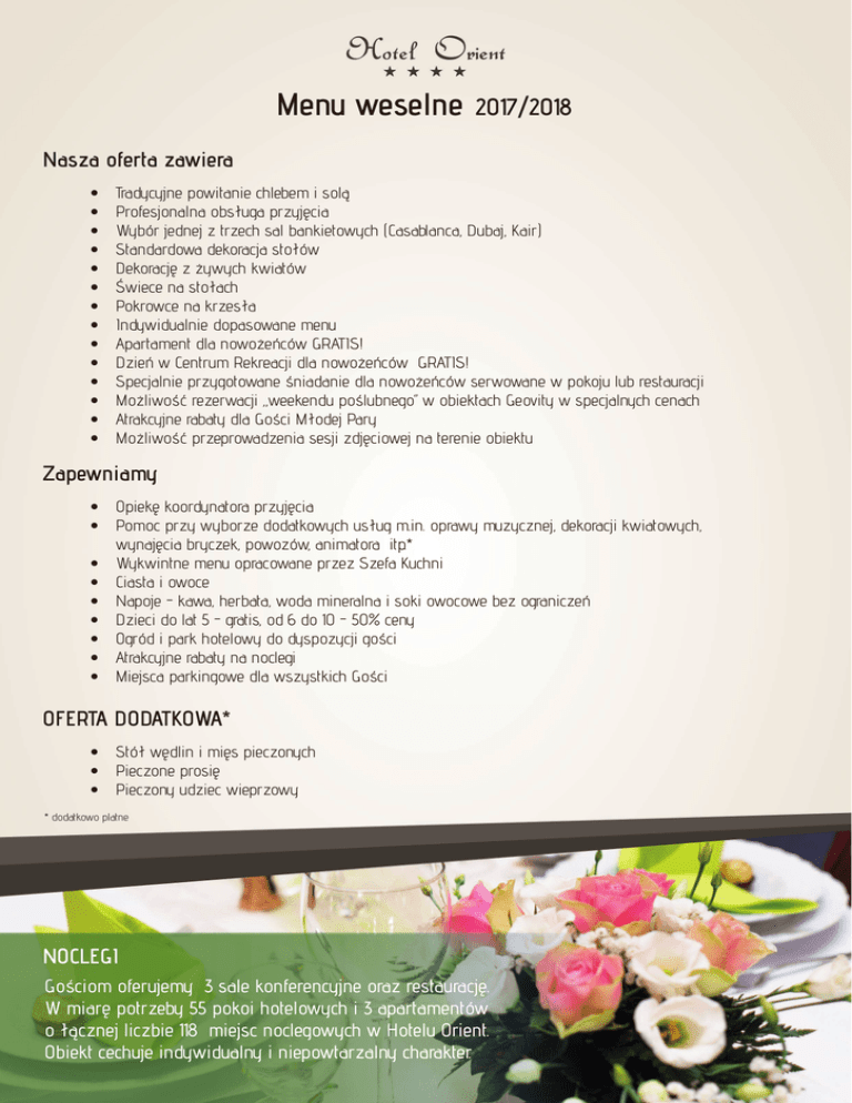 Menu weselne 2017/2018 - Hotel Orient w Krakowie