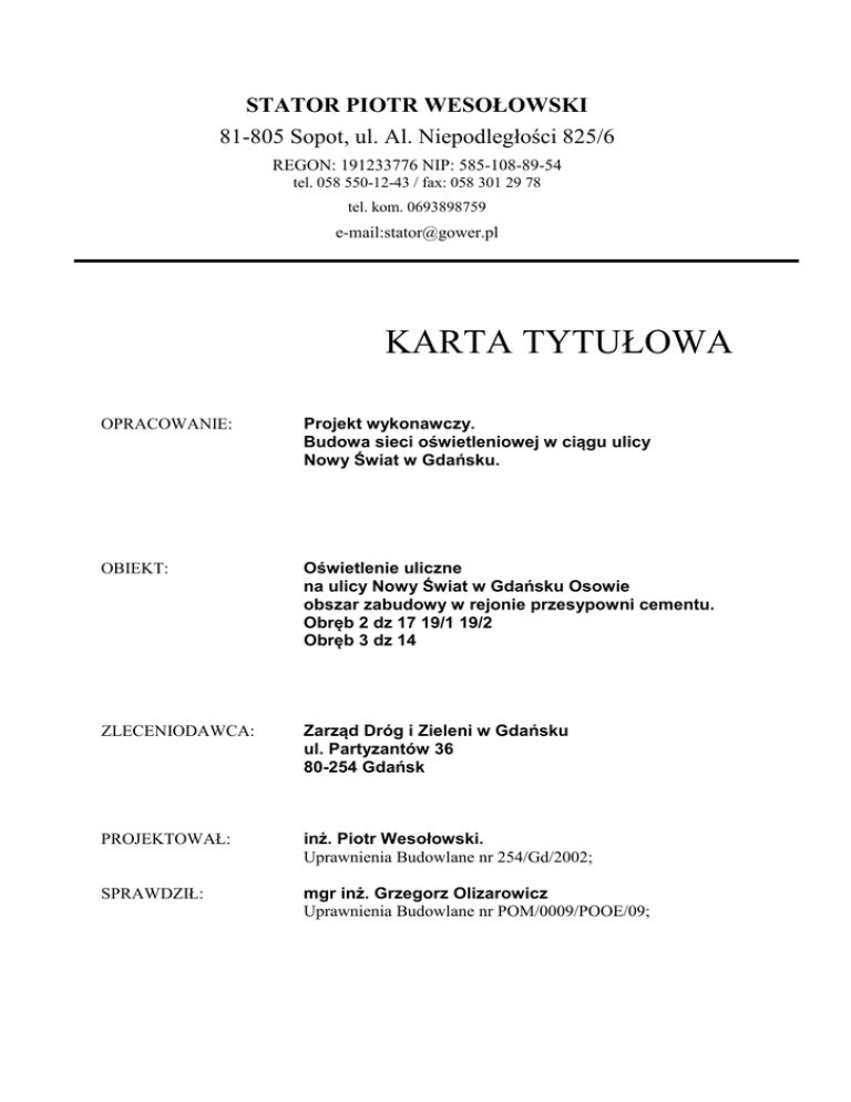KARTA TYTUŁOWA STATOR PIOTR WESOŁOWSKI