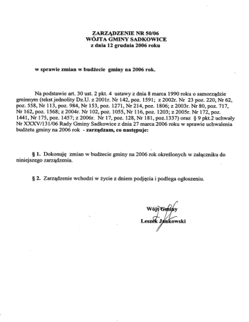 ZARZ¥DZENIE NR 50/06 z dnia 12 grudnia 2006 roku w sprawie