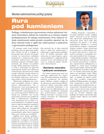 miesi´cznik informacyjno - techniczny nr 1 (101), styczeƒ 2007 Warstwa wykoƒczeniowa pod∏ogi grzejnej Rura pod kamieniem Pod∏og´ z wbudowanym ogrzewaniem mo˝na wykaƒczaç ró˝nymi materia∏ami. Jednak nie wszystkie sà w równym stopniu predysponowane do takiego zastosowania. Przy wyborze rodzaju wykoƒczenia nale˝y przede wszystkim upewniç si´, ˝e dany materia∏ mo˝e w ogóle byç wykorzystany w po∏àczeniu z ogrzewaniem pod∏ogowym. W ostatnim czasie coraz bardziej popularne staje si´ ogrzewanie pod∏ogowe. Dzieje si´ tak ze wzgl´du na szereg jego zalet. System ten charakteryzuje si´ korzystnym rozk∏adem temperatury w pomieszczeniu, który powoduje podwy˝szenie komfortu cieplnego, popraw´ warunków higienicznych, jak równie˝ oszcz´dnoÊç energii. Dzi´ki obni˝eniu temperatury wody w porównaniu do ogrzewaƒ tradycyjnych, mo˝liwe jest efektywne wykorzystanie alternatywnych êróde∏ energii, takich jak energia solarna czy energia geotermalna, które sà znacznie bardziej efektywne, jeÊli wytwarzajà ciep∏o o ni˝szej temperaturze. Ogrzewanie pod∏ogowe jest stosowane szczególnie ch´tnie w budownictwie jednorodzinnym. Np. w Niemczech w nowo powstajàcym budownictwie indywidualnym ju˝ ok. 50% budynków wyposa˝anych jest w ten system ogrzewania. W Polsce tendencja jest podobna. Ten system ogrzewania stosowany jest jednak nie tylko w budownictwie mieszkaniowym. Instalowany jest on tak˝e w innych budynkach o wysokich wymaganiach w zakresie komfortu cieplnego i estetyki wn´trz, takich jak szko∏y, muzea, biura, sklepy itp. Szczególnie mo˝na go poleciç do stosowania w przedszkolach, gdzie dzieci sp´dzajà du˝o czasu, bawiàc si´ na pod∏odze. Ogólnie rzecz bioràc, pod∏og´ z wbudowanym ogrzewaniem mo˝na wykaƒczaç szeregiem materia∏ów. Jednak nie wszystkie sà w równym stopniu predysponowane do takiego zastosowania. Przy wyborze rodzaju wykoƒczenia nale˝y przede wszyst- 42 kim upewniç si´, ˝e dany materia∏ mo˝e w ogóle byç wykorzystany w po∏àczeniu z ogrzewaniem pod∏ogowym. W handlu materia∏y takie oznaczane sà cz´sto logiem „ogrzewanie pod∏ogowe”, takim jak przedstawiono na rys. lub zbli˝onym (dotyczy to zw∏aszcza pokryç tekstylnych i drewnianych). Kamienie naturalne i pokrycia ceramiczne Ten rodzaj wykoƒczenia mo˝e byç stosowany praktycznie bez ograniczeƒ. Wszystkie kamienie naturalne i pokrycia ceramiczne, np. marmur, granit, klinkier, terakota, nadajà si´ do u∏o˝enia na ogrzewanej pod∏odze, poniewa˝ dobrze przewodzà ciep∏o (jak na materia∏y budowlane w tej grupie) oraz nie odkszta∏cajà si´, ani nie emitujà szkodliwych substancji przy podwy˝szonej temperaturze. Dlatego materia∏y z tej grupy sà najcz´Êciej stosowane do wykaƒczania pod∏óg grzejnych. Pod∏ogi wykonane z materia∏ów z tej grupy okreÊlane sà jako „pod∏ogi zimne”. Oznacza to, ˝e np. terakota (bez ogrzewania pod∏ogowego) jest odczuwana przez bosà stop´ jako zimniejsza ni˝ dywan o tej samej temperaturze. Wynika to z wy˝szej przewodnoÊci cieplnej i pojemnoÊci cieplnej terakoty. Stopa postawiona na dywanie jest w stanie bardzo szybko ogrzaç sobie dywan w swoim otoczeniu, natomiast w przypadku terakoty taka mo˝liwoÊç nie wyst´puje. JeÊli jednak posadzka z kamienia naturalnego lub pokrycie ceramiczne zostanà zastosowane w po∏àczeniu z ogrzewaniem pod∏ogowym, to pod∏oga (w czasie pracy instalacji ogrzewczej) b´dzie odczuwana jako w przybli˝eniu neutralna cieplnie – tzn. nie b´dzie odczuwana ani jako zimna, ani specjalnie ciep∏a. Mimo ˝e mówimy o „efekcie ciep∏ej pod∏ogi”, to jednak nie nale˝y oczekiwaç zbyt wysokiej temperatury pod∏ogi. Pod∏oga grzejna ma najcz´Êciej temperatur´ rz´du 28–29ºC przy najni˝szych temperaturach zewn´trznych. Natomiast przez wi´kszoÊç sezonu grzewczego temperatura pod∏ogi jest ni˝sza i mo˝e wynosiç np. 25–26ºC. Dlatego taka pod∏oga nie b´dzie odczuwana jako „bardzo ciep∏a”. Raczej „nie b´dzie zimna”. www.instalator.pl miesi´cznik informacyjno - techniczny nr 1 (101), styczeƒ 2007 Pokrycia elastyczne i tekstylne Pokrycia elastyczne i tekstylne (z w∏ókien naturalnych i sztucznych) sà ju˝ bardziej k∏opotliwe. Charakteryzujà si´ one znacznie wy˝szym oporem cieplnym ni˝ materia∏y z poprzedniej grupy. A wi´c istnieje tu pewna sprzecznoÊç mentalna. Materia∏y, które s∏abo przewodzà ciep∏o, majà byç wykorzystane do dostarczania ciep∏a do pomieszczenia. SprzecznoÊç ta nie wyklucza zupe∏nie wykorzystania tych materia∏ów. Jednak bardzo wa˝ne jest, aby wartoÊç oporu cieplnego wyk∏adziny zosta∏a uwzgl´dniona w projekcie ogrzewania. Natomiast póêniejsze u∏o˝enie takiej wyk∏adziny, jeÊli nie by∏a uwzgl´dniona w projekcie, spowoduje zmniejszenie strumienia ciep∏a i w konsekwencji mo˝e doprowadziç do niedogrzewania pomieszczenia. Pokrycia elastyczne i tekstylne uk∏adane na ogrzewanej pod∏odze muszà byç przyklejone na ca∏ej powierzchni w taki sposób aby nie powsta∏y wybrzuszenia, zwiàzane z rozszerzalnoÊcià termicznà materia∏u. Luêne u∏o˝enie jest dopuszczalne tylko w przypadku niektórych materia∏ów, gdy wyraênie stwierdzi to producent. JednoczeÊnie stosowany klej musi byç odpowiedni – nie mo˝e zmieniaç swojej struktury ani wydzielaç niebezpiecznych zwiàzków w podwy˝szonej temperaturze. Parkiet i pokrycia drewniane Parkiet drewniany uk∏adany musi byç z zastosowaniem odpowiedniej masy wià˝àcej (kleju o odpowiednich parametrach), odpornej na wysokà temperatur´. W tym przypadku bardzo istotne równie˝ jest bezwzgl´dne przestrzeganie dopuszczalnej zawartoÊci wilgoci w drewnie, która nie mo˝e przekraczaç 9%. W innym przypadku w parkiecie mogà powstawaç szczeliny. Przygotowanie jastrychu Opór cieplny Przed u∏o˝eniem warstwy wykoƒczeniowej, jastrych musi zostaç odpowiednio osuszony. Osuszanie mo˝na przysp