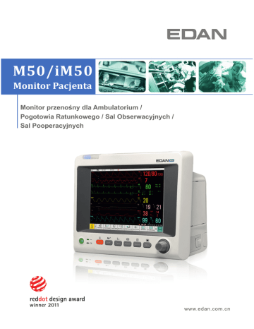 M50/iM50 Monitor Pacjenta Monitor przenośny dla Ambulatorium / Pogotowia Ratunkowego / Sal Obserwacyjnych / Sal Pooperacyjnych M50/iM50 Monitor Pacjenta Nowa generacja monitora pacjenta M50 zapewnia prosty sposób transportu. Wielofunkcyjny moduł pomiarowy oraz nowa platforma aplikacyjna podnosi wydajność wszystkich monitorowanych parametrów. 8.4'' kolorowy ekran LCD TFT z możliwością wyświetlania max. 11 krzywych Detekcja rozrusznika, odporność na zakłócenia elektrochirurgiczne Odporność na de�ibrylację oraz wyjście sygnału synchronizującego de�ibrylację Ekran dotykowy umożliwia intuicyjną obsługę poprzez dotknięcie określonego parametru lub krzywej; standardowa kon�iguracja zawiera pokrętło nawigacyjne OxyCRG, ocena funkcji oddechowej i krążenia noworodków Możliwość wyświetlania na ekranie dużych znaków Analiza arytmii i odcinka S-T Akumulator Li-ion Funkcja przywoływania personelu, dwukierunkowa komunikacja z Centralą Intensywnego Nadzoru Gniazdo karty pamięci SD do przechowywania danych pacjenta Łatwa modernizacja oprogramowania poprzez złącze szeregowe oraz USB Wyjście VGA oraz wyjście analogowe Różnorodne rozwiązania w zakresie montażu w zależności od potrzeb użytkownika Wsparcie komunikacji HL7 Parametery Standardowe: 3/5-odpr. EKG, EDAN SpO2, RESP, NIBP, 2-Temp, tętno, Parametry opcjonalne: ekran dotykowy, drukarka termiczna, WLAN, Nellcor-SpO2, 2-IBP, Respironics CO2 ze strumienia głównego i bocznego, zasilanie 12 V DC NOWOŚĆ!!! iM50 – nowa generacja monitora. Unowocześniona technologia. Większe możliwości pomiarowe. Jeszcze bardziej niezawodny. Komunikacja 3G, oparta na najnowszej technologii GSM – stałe połączenie z kardiomonitorem w obrębie szpitala oraz w dowolnym punkcie w zasięgu sieci GSM, m.in. łączność z ambulansem – możliwość monitorowania pacjenta przez personel medyczny SOR, jeszcze zanim trafi on do szpitala. Ekran dotykowy Łatwa i intuicyjna obsługa dzięki ekranowi dotykowemu Pełna Dokumentacja Wbudowana drukarka termiczna, wydruk trzech krzywych oraz parametrów cyfrowych Podgląd trendów Przegląd alarmów Przegląd pomiarów NIBP Trendy gra�iczne i tabelaryczne (do 120 godz.) Tabele pomiarów NIBP Wyświetlanie wielu krzywych Duże znaki cyfrowe Obsługa czytnika kodu paskowego Torba transportowa Przegląd OxyCRG Łatwy transport Uchwyt umożliwiający zawieszenie na łóżku podczas transportu M50/iM50 Monitor Pacjenta Monitor przenośny dla Ambulatorium/ Pogotowia Ratunkowego /Sal Obserwacyjnych/ Sal Pooperacyjnych Dystrybutor: EDAN INSTRUMENTS, INC. 3/F - B, Nanshan Medical Equipments Park, Nanhai Rd 1019#, shekou, Nanshan Shenzhen, 518067 P.R. China Tel: +86-755-2689 8326 Fax: +86-755-2689 8330 www.edan.com.cn Email: [email protected] c FDA 510K K110922 ANMEDIQ s.c. ul. Raniuszka 13 02-838 Warszawa tel: 22 2992010 fax: 22 4123716 www.anmediq.pl [email protected] PL-PM-M50-V1.5-20120208 Zastrzega się możliwość modyfikacji w wyniku postępu technologicznego. Wydanie 1/2012