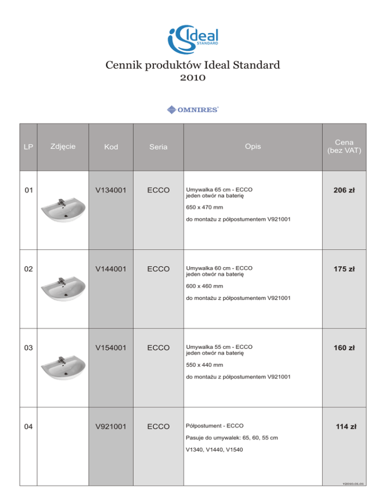 Cennik produktów Ideal Standard 2010