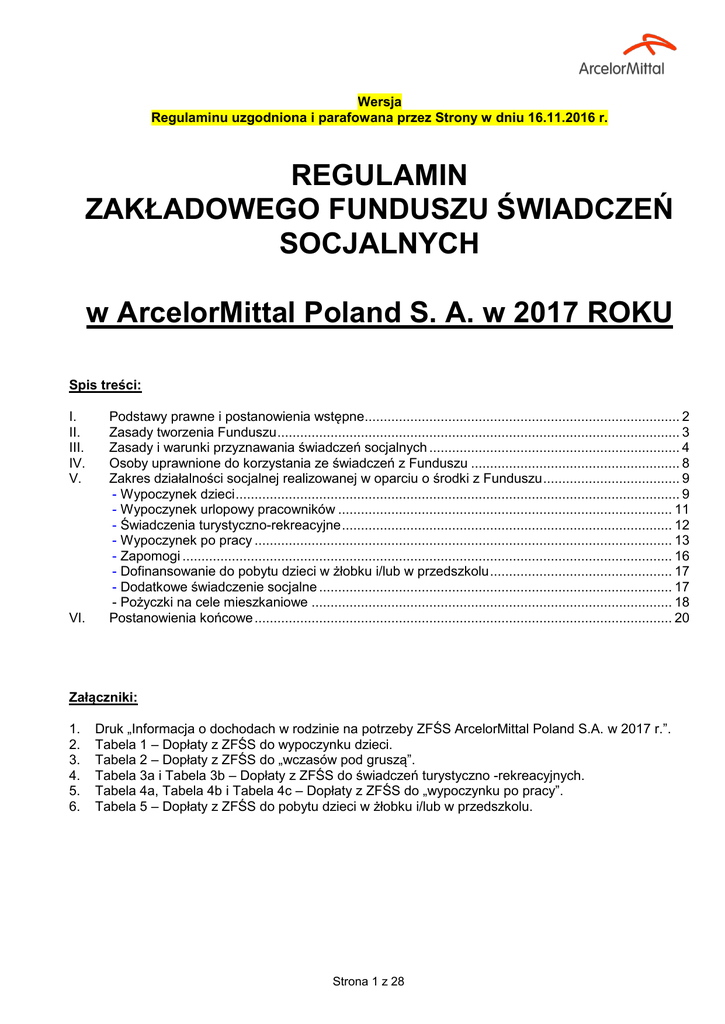 Regulamin ZFŚS ArcelorMittal Poland S.A. na rok 2017