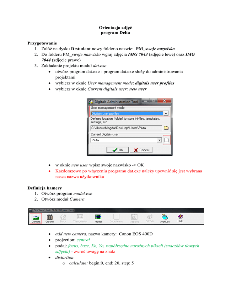 Orientacja zdjęć program Delta Przygotowanie 1