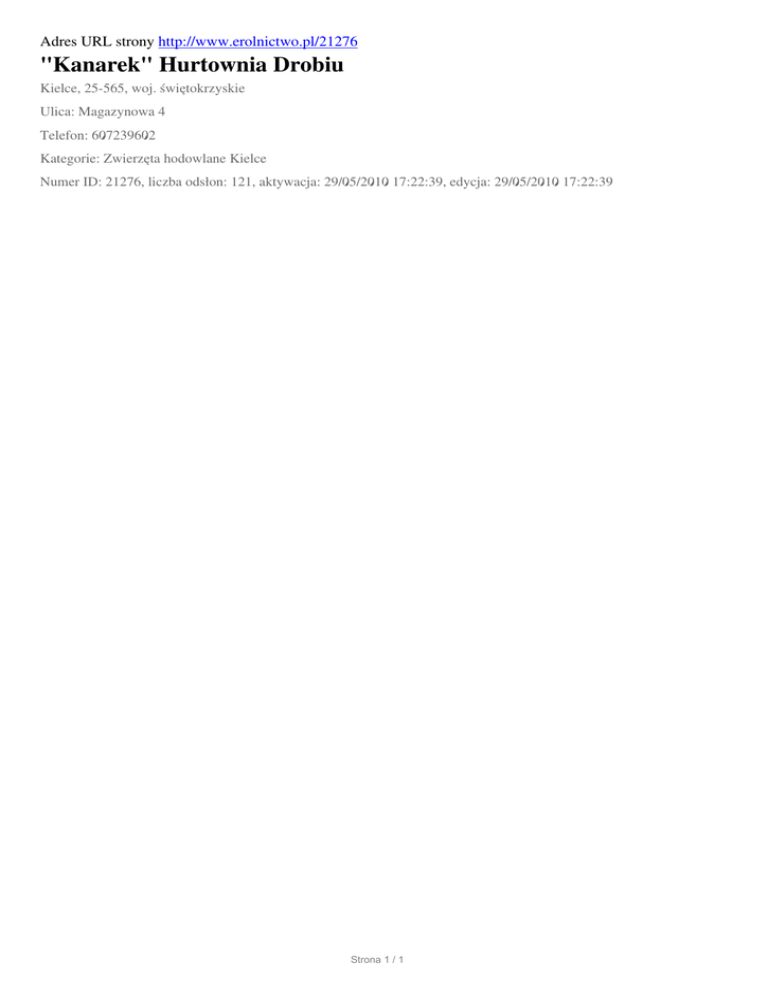 "Kanarek" Hurtownia Drobiu, Kielce, Magazynowa 4