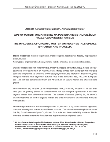 Wpływ materii organicznej na pobieranie metali ciężkich przez