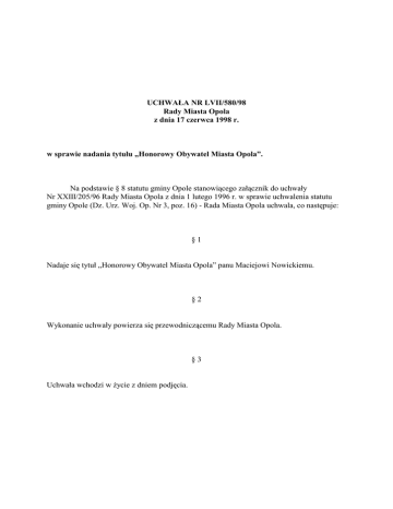 UCHWAŁA NR LVII/580/98 Rady Miasta Opola z dnia 17 czerwca