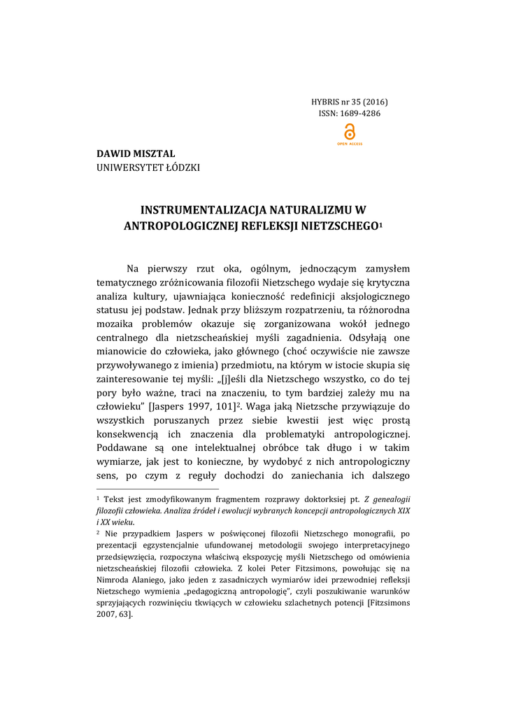 instrumentalizacja naturalizmu w antropologicznej refleksji