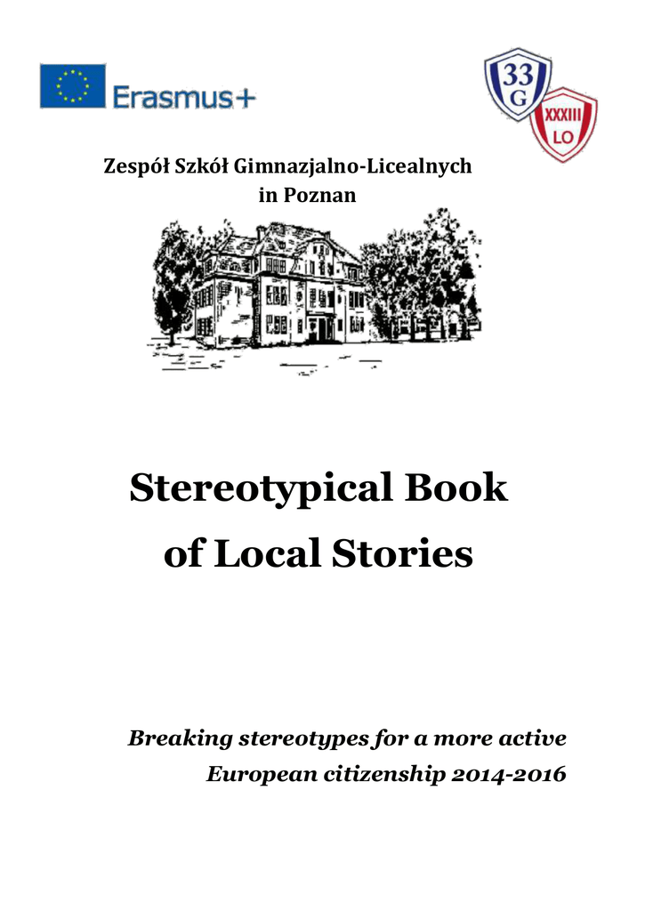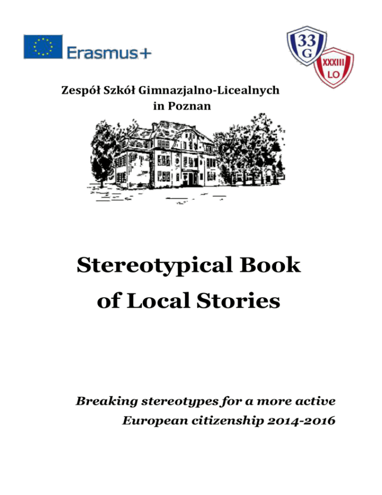 Zespół Szkół Gimnazjalno-Licealnych in Poznan Stereotypical Book of Local Stories Breaking stereotypes for a more active European citizenship 2014-2016 Legend of the Poznan Billy Goats W hen in 1551 the town hall in Poznan was rebuilt after the great fire, it was decided to install a clock. This was to be a celebratory occasion with a sumptuous feast to which several eminent persons were invited. The main dish was to be roast venison haunch and the preparation befell a master chef. A young kitchen hand named Pietrek was responsible for watching over the roast. A lot of exciting things were happening in the marketplace at that moment. So much so that the boy took his eye off the roast for a second to watch what was going on in the marketplace. Unfortunately, his absence dragged on... and on.... and... the roast fell into the fire and was burnt to cinders. The terrified as he was, the clever lad ran to a nearby meadow where the city folk grazed their animals, made off with two billy goats and dragged them into the town hall kitchen. The goats, sensing their imminent demise, wrested themselves free of the boy and fled to the tower. There, they started head butting each other before the assembled crowd. The spectacle so amused the mayor, voivode and all the guests that Pietrek was pardoned and the clockmaker bidden to construct a special mechanism to set the wooden goats in motion every day. Ever since then, once the bugle sounds at the stroke of noon, the assembled crowd has been treated to the two head-butting billy goats every day. Legenda o koziołkach z ratuszowej wieży W roku 1551, kiedy przebudowywano poznański ratusz, miała się odbyć wielka uczta z okazji zainstalowania na wieży nowego zegara. Nie każde miasto było stać na taki wydatek, a że Poznań był wtedy jednym z najbogatszych miast, rada miejska postanowiła hucznie uczcić to ważne wydarzenie. Zaplanowano wydać wielką ucztę, na którą miały zjechać do Poznania najważniejsze osobistości, nawet wojewoda z małżonką. Nic więc dziwnego, że i potrawy serwowane na stoły także musiały być wyjątkowe. Daniem wieczoru miał być udziec sarni, który przygotowywał mistrz kucharski Mikołaj. Do obracania pieczeni na rożnie został wyznaczony mały kuchcik Pietrek. Goście już zaczęli się zjeżdżać, na rynku robiło się coraz tłoczniej, tyle ciekawych rzeczy do obejrzenia, w dodatku sam mistrz Bartłomiej opowiadał mu rano o mechanizmie zegara, a tu trzeba siedzieć i pilnować pieczeni. W końcu Pietrek nie wytrzymał i postanowił tylko na chwilkę zostawić pieczeń i chociaż raz spojrzeć na zegar i na te wszystkie wspaniałości na poznańskim rynku. Przecież nie będzie go tylko kilka minut. Niestety kuchcik zapomniał o pieczeni, która zsunęła się z rusztu prosto w ogień i spaliła się na węgielek. Przerażony chłopiec nie stracił głowy. Pobiegł ile sił w nogach na pobliską łąkę, gdzie mieszkańcy miasta wypasali swoje zwierzęta., porwał dwa koziołki i siłą zaciągnął je do ratuszowej kuchni. Koziołki czując, że ich koniec jest bliski, w ogólnym zamieszaniu wyrwały się chłopcu i uciekły na wieżę. Tam na oczach zgromadzonej gawiedzi przestraszone zaczęły się trykać rogami. Widok koziołków tak rozbawił burmistrza, wojewodę i wszystkich gości, że darowali Pietrkowi jego winę, a zegarmistrzowi polecili wykonanie specjalnego mechanizmu, który uruchamiałby każdego dnia zegarowe koziołki. Od tego czasu codziennie w samo południe, kiedy trębacz gra hejnał pokazują zgromadzonej gawiedzi dwa trykające się koziołki. się