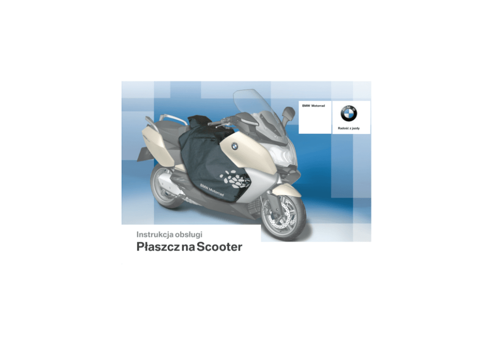 BMW Motorrad Radość z jazdy Instrukcja obsługi Płaszcz na Scooter Dane motocykla/Dealera Dane pojazdu Dane Dealera Model Konsultant w serwisie Numer identyfikacyjny pojazdu Pani/Pan Numer koloru Numer telefonu Pierwsza rejestracja Numer rejestracyjny Adres Dealera/Telefon (pieczęć firmy) Cieszymy się, że zdecydowałeś się na zakup płaszcza na Scooter firmy BMW Motorrad. Zapoznaj się ze swoim nowym płaszczemn na Scooter, abyś mógł bezpiecznie uczestniczyć w ruchu drogowym. Przeczytaj niniejszą instrukcję obsługi, która zawiera najważniejsze informacje na temat płaszcza na Scooter. W razie jakichkolwiek pytań Twój Dealer BMW Motorrad w każdej chwili służy radą i pomocą. Wiele radości z płaszcza na Scooter oraz szerokiej i bezpiecznej drogi życzy Ci BMW Motorrad. 77 01 8 536 209 *77018536209* *77018536209* *77018536209* Spis treści 1 Wskazówki ogólne . . . . . . 3 Wprowadzenie . . . . . . . . . . . . . . . 4 Skróty i symbole . . . . . . . . . . . . . 4 2 Widoki elementów . . . . . . . 5 Płaszcz na Scooter . . . . . . . . . . . 6 3 Obsługa . . . . . . . . . . . . . . . . . . 7 Zatrzask zabezpieczający . . . . . 8 Mocowanie płaszcza na Scooter . . . . . . . . . . . . . . . . . . . . . . 8 Mocowanie zintegrowanej osłony siedzenia . . . . . . . . . . . . . . 9 Zdejmowanie osłony wewnętrznej . . . . . . . . . . . . . . . . . . . . 10 4 Dane techniczne . . . . . . . . Prędkość . . . . . . . . . . . . . . . . . . . . Materiał zewnętrzny . . . . . . . . . Podszewka . . . . . . . . . . . . . . . . . . Wodoszczelność . . . . . . . . . . . . 11 12 12 12 12 Wprowadzenie . . . . . . . . . . . . . . . . . . . . . . . 4 Skróty i symbole . . . . . . . . . . . . . . . . . . . . . 4 1 3 Wskazówki ogólne Wskazówki ogólne z 1 Wskazówki ogólne 4 z Wprowadzenie Płaszcz na Scooter zapewnia optymalną i solidną ochronę kierowcy Maxi-Scooter przed wodą i chłodem. Płaszcz na Scooter można zamocować na Maxi-Scooterze, wykonując kilka prostych czynności. Dzięki niemu jako kierowca Maxi-Scootera będziesz doskonale zabezpieczony przed wiatrem i warunkami pogodowymi. Przy wykonywaniu poniższych prac niepewnie ustawiony motocykl może się przewrócić. Zadbać o to, aby motocykl stał stabilnie. Używanie niewłaściwych środków czyszczących i pielęgnacyjnych może prowadzić do uszkodzenia powierzchni. Do czyszczenia używać łagod- nego roztworu mydła i miękkiej gąbki. Nie stosować żadnych innych rozpuszczalników ani benzyny. Instrukcja wykonywania czynności. Pierwszy montaż elementów mocujących może zostać wykonany wyłącznie przez Dealera BMW Motorrad. Odsyłacz do strony z dalszymi informacjami. Skróty i symbole Oznacza wskazówki ostrzegawcze, których należy bezwzględnie przestrzegać ze względu na bezpieczeństwo własne, bezpieczeństwo innych oraz aby uchronić swój motocykl przed uszkodzeniem. Szczególne wskazówki w celu ułatwienia pracy przy czynnościach z zakresu obsługi, kontroli i regulacji oraz pracach konserwacyjnych. Oznacza koniec wskazówki. Wynik czynności. Oznacza koniec informacji dotyczącej akcesoriów lub wyposażenia. Moment dociągający. Dane techniczne. Płaszcz na Scooter . . . . . . . . . . . . . . . . . . 6 2 5 Widoki elementów Widoki elementów z 2 Widoki elementów 6 z Płaszcz na Scooter 1 2 3 4 5 6 Klapa osłaniająca zamek zapłonu Torba środkowa Torba boczna Zintegrowana osłona siedzenia Osłona wewnętrzna Klapa osłaniająca zamek Scootera Obsługa Zatrzask zabezpieczający . . . . . . . . . . . . 8 Mocowanie płaszcza na Scooter . . . . . 8 3 7 Zdejmowanie osłony wewnętrznej . . . . . . . . . . . . . . . . . . . . . . . . . . . . . . . . . . 10 Obsługa Mocowanie zintegrowanej osłony siedzenia . . . . . . . . . . . . . . . . . . . . . . . . . . . . . . . 9 z 3 Otwieranie zatrzasku zabezpieczającego Mocowanie płaszcza na Scooter Zamykanie zatrzasku zabezpieczającego Obsługa 8 Zatrzask zabezpieczający z Przy zamykaniu zatrzasku zabezpieczającego 1 nacisnąć tylko zewnętrzny pierścień strzałki lekko w dół. Zatrzask bezpieczeństwa zatrzaśnie się. Przy zamykaniu nie naciskać na kapturek uchwytu 2. Aby otworzyć zatrzask zabezpieczający 1 pociągnąć kapturek uchwytu 2 w górę. Wsunąć płaszcz na Scooter 1 centralnie pod obudowę kierownicy 2 i rozłożyć części zewnętrzne w dół. Mocowanie zintegrowanej osłony siedzenia Pojazd został odstawiony i nie porusza się. Zamknąć zatrzaski zabezpieczające 1 po obu stronach. Zamykanie zatrzasku zabezpieczającego ( 8). Otwieranie zatrzasku zabezpieczającego ( 8). Zamknąć połączenia wtykowe 1 i hakowe 2 po obu stronach. Przed rozpoczęciem jazdy zamknąć połączenie wtykowe 1 3 9 Obsługa i mocno zaciągnąć pas mocujący 2. z Wcisnąć kluczyk w dół, a następnie obrócić w kierunku ruchu wskazówek zegara. Otworzyć siedzenie. Zdejmowanie osłony wewnętrznej 3 Obsługa 10 z Otworzyć płaszcz na Scooter 1. Wyciągnąć zintegrowaną osłonę siedzenia 2 i okryć nią siedzenie 3. Zamknąć siedzenie. Zwracać przy tym uwagę, aby zintegrowana osłona siedzenia nie została zatrzaśnięta przez mechanizm blokujący. Otworzyć zapięcia guzikowe 1. Zdjąć osłonę wewnętrzną 2. Dane techniczne Prędkość . . . . . . . . . . . . . . . . . . . . . . . . . . . 12 Materiał zewnętrzny . . . . . . . . . . . . . . . . . 12 4 11 Wodoszczelność . . . . . . . . . . . . . . . . . . . . 12 Dane techniczne Podszewka . . . . . . . . . . . . . . . . . . . . . . . . . 12 z 4 12 Prędkość Ograniczenie prędkości podczas jazdy z pokrowcem na skuter 130 km/h Dane techniczne Materiał zewnętrzny z Poliester 30 % Polichlorek winylu 70 % Podszewka Poliester 100 % Wodoszczelność Torba środkowa hydrofobowa Torby boczne hydrofobowe Osłona siedzenia wodoszczelna W zależności od zakresu wyposażenia i akcesoriów tego motocykla, ale również w zależności od wersji dla danego kraju, mogą wystąpić ró