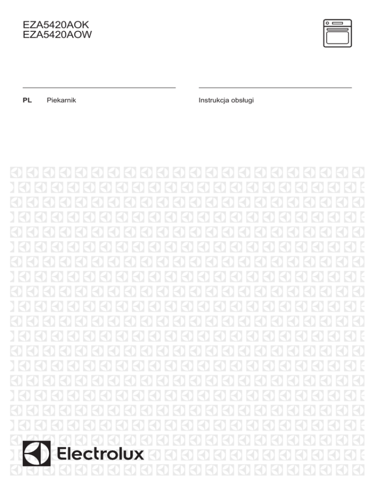 EZA5420AOK EZA5420AOW PL Piekarnik Instrukcja obsługi 2 www.electrolux.com SPIS TREŚCI 1. INFORMACJE DOTYCZĄCE BEZPIECZEŃSTWA........................................... 3 2. WSKAZÓWKI DOTYCZĄCE BEZPIECZEŃSTWA............................................ 4 3. OPIS URZĄDZENIA........................................................................................... 7 4. PRZED PIERWSZYM UŻYCIEM........................................................................8 5. CODZIENNA EKSPLOATACJA......................................................................... 8 6. FUNKCJE ZEGARA......................................................................................... 10 7. KORZYSTANIE Z AKCESORIÓW................................................................... 11 8. DODATKOWE FUNKCJE.................................................................................13 9. WSKAZÓWKI I PORADY................................................................................. 13 10. KONSERWACJA I CZYSZCZENIE................................................................ 19 11. ROZWIĄZYWANIE PROBLEMÓW................................................................ 23 12. INSTALACJA.................................................................................................. 24 13. EFEKTYWNOŚĆ ENERGETYCZNA............................................................. 25 Z MYŚLĄ O TOBIE Dziękujemy za zakup urządzenia Electrolux. Jest ono owocem dziesięcioleci doświadczeń i innowacji. To pomysłowe i stylowe urządzenie zostało zaprojektowane z myślą o Tobie. Użytkując je, możesz mieć zawsze pewność uzyskania wspaniałych efektów. Witamy w świecie marki Electrolux! Zapraszamy na naszą witrynę internetową, aby: Otrzymać wskazówki dotyczące użytkowania, broszury, pomoc w rozwiązywaniu problemów oraz informacje dotyczące serwisu: www.electrolux.com/webselfservice Zarejestrować swój produkt i uprościć jego obsługę serwisową: www.registerelectrolux.com Nabyć akcesoria, materiały eksploatacyjne i oryginalne części zamienne do swojego urządzenia: www.electrolux.com/shop OBSŁUGA KLIENTA Zalecamy stosowanie oryginalnych części zamiennych. Kontaktując się z autoryzowanym centrum serwisowym, należy przygotować poniższe dane: model, numer produktu, numer seryjny. Stosowne informacje można znaleźć na tabliczce znamionowej. Ostrzeżenie / Przestroga – Informacje dotyczące bezpieczeństwa Ogólne informacje i wskazówki Informacje dotyczące środowiska naturalnego Producent zastrzega sobie możliwość wprowadzenia zmian bez wcześniejszego powiadomienia. POLSKI 1. 3 INFORMACJE DOTYCZĄCE BEZPIECZEŃSTWA Przed przystąpieniem do instalacji i rozpoczęciem eksploatacji urządzenia należy uważnie zapoznać się z załączoną instrukcją obsługi. Producent nie odpowiada za obrażenia ciała ani szkody spowodowane nieprawidłową instalacją lub eksploatacją urządzenia. Należy zachować instrukcję obsługi w bezpiecznym i łatwo dostępnym miejscu do wykorzystania w przyszłości. 1.1 Bezpieczeństwo dzieci i osób o ograniczonych zdolnościach ruchowych, sensorycznych lub umysłowych • • • • • • • Urządzenie mogą obsługiwać dzieci po ukończeniu ósmego roku życia oraz osoby o ograniczonych zdolnościach fizycznych, sensorycznych lub umysłowych, a także nieposiadające odpowiedniej wiedzy lub doświadczenia, jeśli będą one nadzorowane lub zostaną poinstruowane w zakresie bezpiecznego korzystania z urządzenia i będą świadome związanych z tym zagrożeń. Nie pozwalać dzieciom bawić się urządzeniem. Przechowywać opakowanie w miejscu niedostępnym dla dzieci lub pozbyć się go w odpowiedni sposób. Dzieciom i zwierzętom nie wolno zbliżać się do pracującego lub stygnącego urządzenia. Łatwo dostępne elementy urządzenia mocno się nagrzewają. Jeśli urządzenie wyposażono w blokadę uruchomienia, zaleca się jej włączenie. Dzieciom nie wolno zajmować się czyszczeniem ani konserwacją urządzenia bez odpowiedniego nadzoru. Dzieciom w wieku do 3 lat nie wolno zbliżać się do urządzenia podczas jego pracy. 4 www.electrolux.com 1.2 Ogólne zasady bezpieczeństwa • • • • • • • • • Instalacji urządzenia i wymiany jego przewodu zasilającego może dokonać wyłącznie osoba o odpowiednich kwalifikacjach. OSTRZEŻENIE: Urządzenie oraz jego nieosłonięte elementy nagrzewają się podczas pracy do wysokiej temperatury. Należy zachować ostrożność, aby uniknąć kontaktu z elementami grzejnymi. Dzieci poniżej 8 roku życia nie powinny znajdować się w pobliżu urządzenia, jeśli nie są pod stałym nadzorem. Podczas wyjmowania i wkładania akcesoriów lub naczyń należy zawsze używać rękawic kuchennych. Przed przystąpieniem do konserwacji urządzenia należy odłączyć je od zasilania. Aby uniknąć porażenia prądem, przed przystąpieniem do wymiany żarówki należy upewnić się, że urządzenie jest wyłączone. Nie czyścić urządzenia za pomocą myjek parowych. Do czyszczenia szyb w drzwiach nie należy używać ściernych środków czyszczących ani ostrych, metalowych myjek, ponieważ mogą one porysować powierzchnię, co może skutkować pęknięciem szkła. Jeśli przewód zasilający jest uszkodzony, musi wymienić go producent, autoryzowane centrum serwisowe lub inna wykwalifikowana osoba, aby zapobiec zagrożeniu porażeniem prądem. Aby wymontować prowadnice blach, należy odciągnąć najpierw ich przednią, a następnie tylną część od bocznych ścianek. Zamontować prowadnice blach w odwrotnej kolejności. 2. WSKAZÓWKI DOTYCZĄCE BEZPIECZEŃSTWA 2.1 Instalacja OSTRZEŻENIE! Urządzenie może zainstalować wyłącznie wykwalifikowana osoba. • • • Usunąć wszystkie elementy opakowania. Nie instalować ani nie używać uszkodzonego urządzenia. Należy postępować zgodnie z instrukcją instalacji dołączoną do urządzenia. POLSKI • 