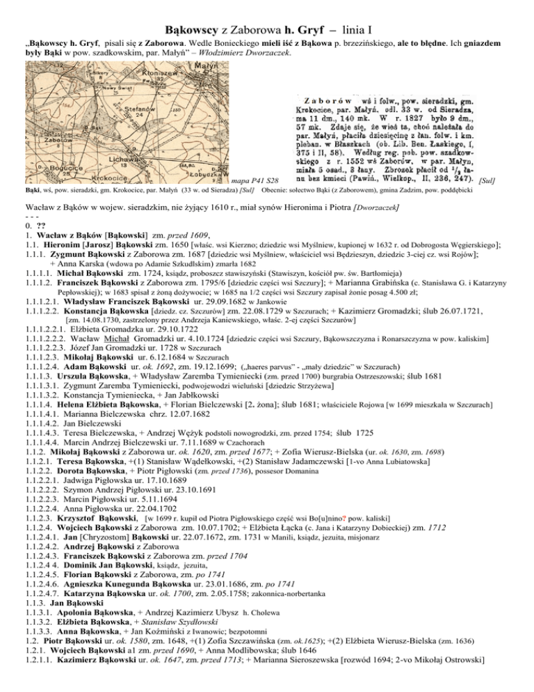 ------------- informacje dot. Bąkowskich h. Gryf – wg kolejności na pow. linii gen. -------------1.1. Hieronim [Jarosz) Bąkowski s. Wacława z Bąków