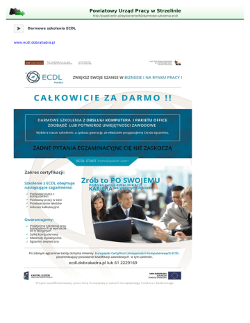 Powiatowy Urząd Pracy w Strzelinie http://pupstrzelin.pl/wydarzenie/60/darmowe-szkolenia-ecdl Darmowe szkolenia ECDL www.ecdl.dobrakadra.pl