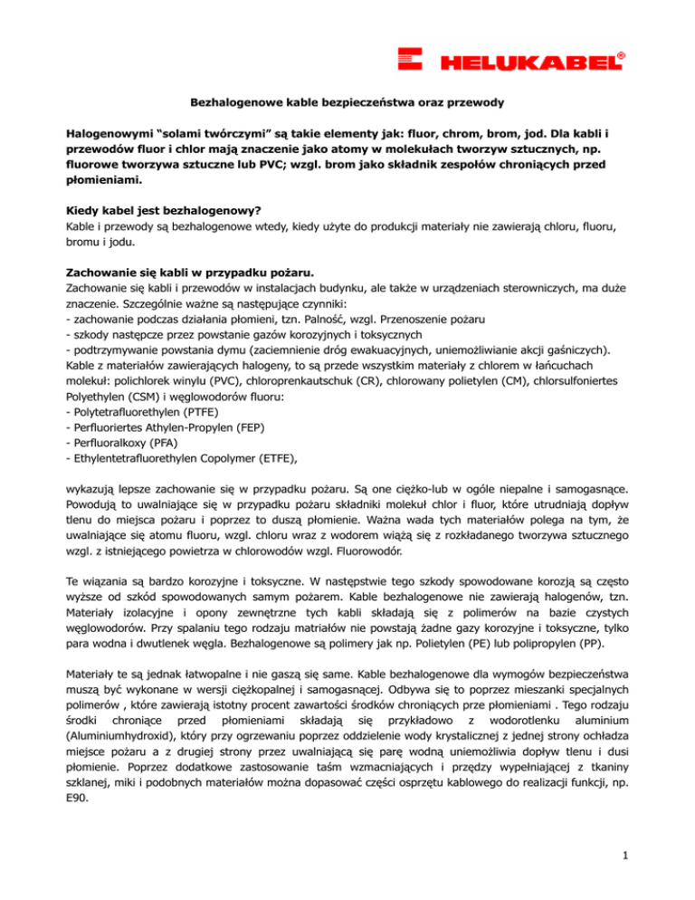 Bezhalogenowe kable bezpieczeństwa oraz przewody