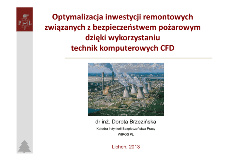 Optymalizacja inwestycji remontowych związanych z bezpieczeństwem pożarowym dzięki wykorzystaniu technik komputerowych CFD dr inż. Dorota Brzezińska Katedra Inżynierii Bezpieczeństwa Pracy WIPOŚ PŁ Licheń, 2013 Co to jest CFD? Computational Fluid Dynamics – obliczeniowa dynamika płynów – rozwiązywanie podstawowych równań mechaniki płynów (Naviera-Stokesa) z wykorzystaniem komputera. Modelowanie rozwoju pożaru, przepływu dymu i powietrza, ruch ciepła, promieniowania … Programy komputerowe 1. Specjalistyczne programy do modelowania pożaru i rozprzestrzeniania się dymu (FDS, Jasmine, Smartfire) 2. Programy ogólne (Fluent, Phoenics, CFX) Możliwości technik komputerowych - precyzyjna ocena warunków mogących wystąpić w przypadku pożaru, nawet w obiektach o bardzo skomplikowanej geometrii, - uwzględnienie wszystkich istotnych architektury i wyposażenia wnętrz, elementów - uwzględnienie zastosowanych systemów ochrony przeciwpożarowej, takich jak np. detekcja pożaru, instalacja wentylacyjna, tryskaczowa czy zraszaczowa. CFD w energetyce NFPA 850 NFPA 805 NFPA 805: Projektowanie zabezpieczeń przeciwpożarowych należy przeprowadzać za pomocą technik komputerowych, w oparciu o odpowiednio dobrane scenariusze pożarowe, przewidujące wystąpienie pożaru w miejscach stwarzających największe zagrożenie. Przy wyborze scenariuszy pożarowych uwzględnić należy warunki operacyjne elektrowni przy największym obciążeniu, w okresach przerw w pracy i przy wymianie paliwa oraz odpowiednio przyjąć następujące parametry takie jak: - materiały palne – typy, ilość, lokalizacja, stężenie, parametry spalania, - źródła zapłonu, - geometria obiektu, - występujące systemy ochrony przeciwpożarowej i ich parametry, - wpływ wentylacji – zarówno naturalnej, jak i mechanicznej, - załoga – liczba i miejsce przebywania załogi elektrowni, zarówno w strefie analizowanej, jak i strefach sąsiadujących, warunki ewakuacji, możliwe reakcje załogi na powstałe zagrożenie. Do analiz CFD można wykorzystywać tylko programy, które mają odpowiednią weryfikację pod względem możliwości stosowania w elektrowniach! Pożar na przenośniku Oddymianie przesypu Instalacja gaśnicza Źródło pożaru Scenariusz: pożar pod taśmą, na skutek przegrzania krążnika, od którego nastąpiło zapalenie się zalegającego pyłu. Wykrycie pożaru przez system sygnalizacji pożaru wyposażony w czujki GSME. Zatrzymanie taśmy po wykryciu pożaru. Przeprowadzone zostały 3 symulacje komputerowe: 1. brak instalacji gaśniczej, 2. zastosowanie instalacji tryskaczowej, 3. zastosowanie instalacji zraszaczowej lub mgłowej Pożar na przenośniku Systemy gaśnicze: Instalacja tryskaczowa - uruchomienie w obszarze, w którym wystąpi temperatura przekraczająca temperaturę wyzwalania tryskacza (ok 600 s). Selektywne działanie, pozwalające na ograniczenie akcji gaśniczej tylko do miejsca wystąpienia wysokiej temperatury - zredukowanie strat spowodowanych działaniem wody i zużycia wody. Instalacja zraszaczowa - uruchomienie całej sekcji po wykryciu pożaru przez czujkę GSME (ok. 180 s). Duże zapotrzebowanie wody, znaczne straty spowodowane działaniem wody. Instalacja zraszaczowa mgłowa - uruchomienie całej sekcji po wykryciu pożaru przez czujkę GSME (ok. 180 s). Małe zapotrzebowanie wody, niewielkie straty spowodowane działaniem wody. Pożar na przenośniku Przewidywany rozwój pożaru w zależności od zastosowanej instalacji gaśniczej: Pożar na przenośniku Brak instalacji gaśniczej Instalacja zraszaczowa Instalacja tryskaczowa Pożar na przenośniku Obserwacje z przeprowadzonych analiz Brak instalacji gaśniczej - zarówno na przenośniku jak i w budynku przesypowym należy się spodziewać znacznego wzrostu temperatury (>350°C), która mo że spowodować znaczne uszkodzenia konstrukcji i duże straty materialne. Instalacji tryskaczowa – uruchomienie tryskaczy zlokalizowanych powyżej źródła pożaru; możliwe wystąpienie wysokiej temperatury w pobliżu samego źródła pożaru, niemniej jednak nie powinna być ona szkodliwa dla dalszych jego odcinków; podwyższona temperatura w przestrzeni budynku przesypowego, mimo, iż zastosowano w nim instalację oddymiającą. Instalacja zraszaczowa - temperatura w obudowanym przenośniku nie powinna przekroczyć około 50oC, co oznacza, iż pożar nie będzie miał negatywnego oddziaływania na konstrukcję przenośnika. Wnioski Przeprowadzone analizy rozwoju pożaru i rozprzestrzeniania się dymu, na przykładzie przenośnika taśmowego, pokazały możliwości prognozowania skutków wystąpienia pożaru oraz oceny wpływu zastosowania różnego rodzaju instalacji gaśniczej wodnej. Porównując koszty realizacji poszczególnych rozwiązań oraz wielkość potencjalnych strat możliwe jest podjęcie optymalnych decyzji inwestycyjnych w różnych obszarach modernizowanych układów energetycznych. Podsumowanie Symulacje komputerowe CFD w obiektach energetycznych umożliwiają: • wspomaganie pracy w zakresie inżynierii pożarowej, • ocenę skuteczności działania i redukcji ryzyka z zastosowaniem różnego rodzaju zabezpieczeń przeciwpożarowych oraz systemów detekcji, • dobór systemów zabezpieczeń przeciwpożarowych, • projektowanie bezpiecznych dróg ewakuacyjnych, • projektowania skutecznych systemów wentylacji i oddymiania, • projektowania optymalnych podziałów obiektu na strefy pożarowe, • ocenę spodziewanych skutków pożarów, • przeprowadzanie dochodzeń popożarowych, itp. Na podstawie symulacji CFD możliwy jest wybór rozwiązań zarówno optymalnych kosztowo jak i zapewniających odpowiedni poziom bezpieczeństwa pracowników, ekip ratowniczych i mienia. Dziękuję za uwagę dr inż. Dorota Brzezińska Katedra Inżynierii Bezpieczeństwa Pracy WIPOŚ PŁ [email protected]