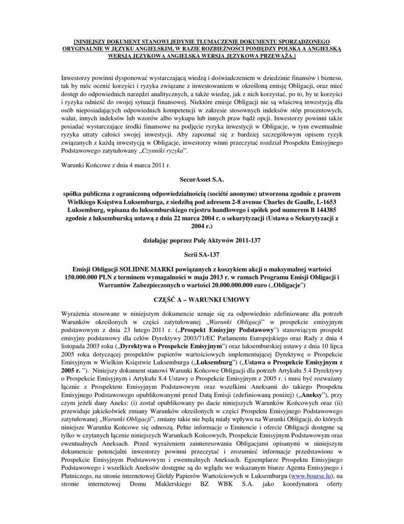 solidnemarki). Warunki Końcowe są dostępne do wglądu w określonym biurze Agenta Emisyjnego i